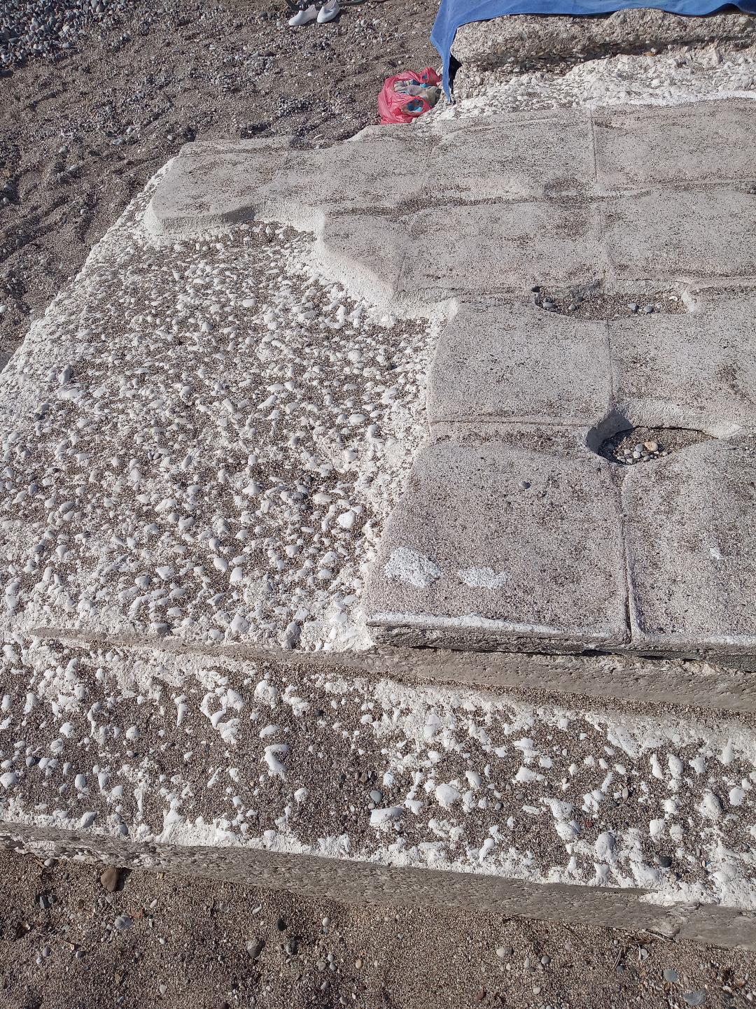 Και να συμπληρώσω ότι δεξιά και αριστερά από την ράμπα υπάρχουν τραπεζάκια και ξαπλώστρες του εστιατορίου που βρίσκεται από πάνω, εμποδίζοντας τν πρόσβαση στην παραλία..