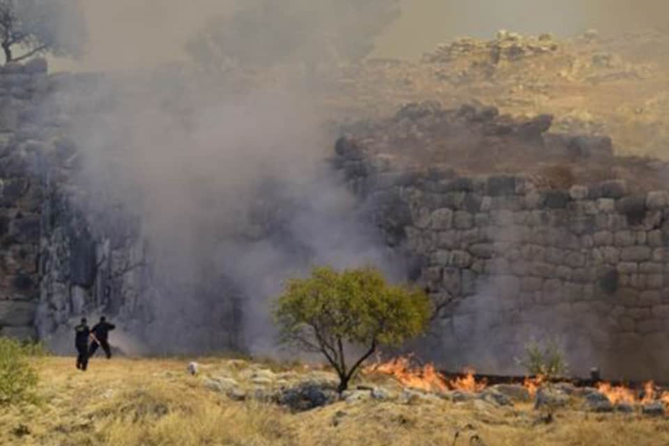 Δεν γλύτωσε ο αρχαιολογικός χώρος των Μυκηνών. Επεκτάθηκε η φωτιά