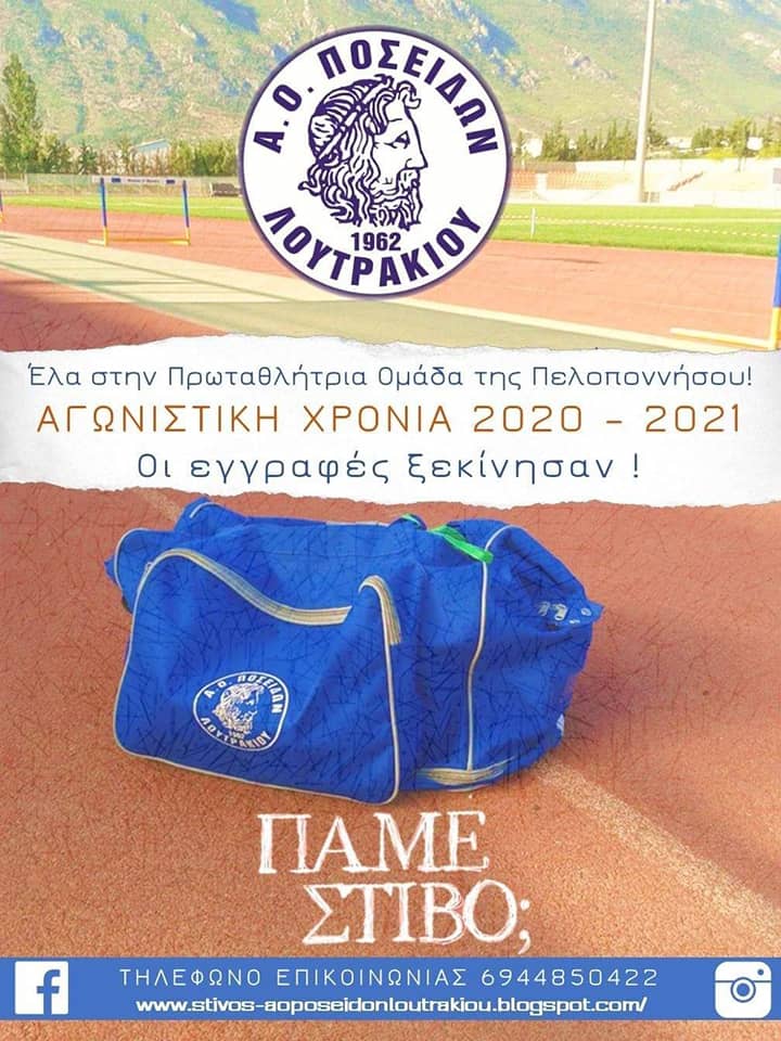 Το τμήμα στίβου του Α.Ο. Ποσειδώνα Λουτρακίου ανακοινώνει την έναρξη των προπονήσεων των αθλητών και αθλητριών σε όλες τις ηλικιακές κατηγορίες για την αγωνιστική περίοδο  2020- 2021.