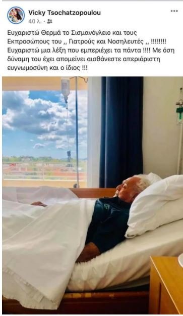 Η Βίκυ Σταμάτη δημοσίευσε, ως ευχαριστήριο, μια φωτογραφία του Άκη Τσοχατζόπουλου στο νοσοκομείο