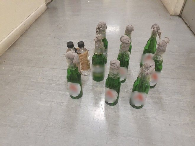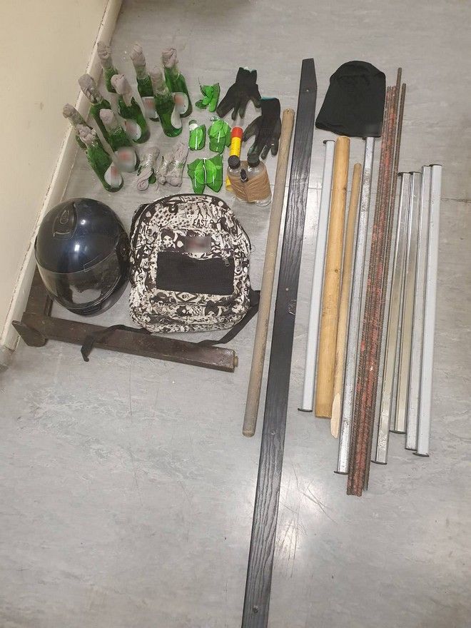 Σε έρευνα που πραγματοποιήθηκε στο σημείο της επίθεσης βρέθηκαν και κατασχέθηκαν 9 βόμβες μολότοφ, αυτοσχέδιος εμπρηστικός εκρηκτικός μηχανισμός (Α.Ε.Ε.Μ.) αποτελούμενος από δύο πλαστικά μπουκάλια περιέχοντα βενζίνη, με προσαρμοσμένη κροτίδα, 4 σιδερένιοι μεταλλικοί ράβδοι, 6 μεταλλικοί σωλήνες, 4 ξύλινα στειλιάρια, 3 λαιμοί από γυάλινα μπουκάλια, με προσαρμοσμένο σε αυτούς ύφασμα, φωτοβολίδα χειρός, ξύλινο πόδι τραπεζιού, κράνος, υφασμάτινη κουκούλα τύπου FULL FACE, γάντια χειρός και τσάντα.
