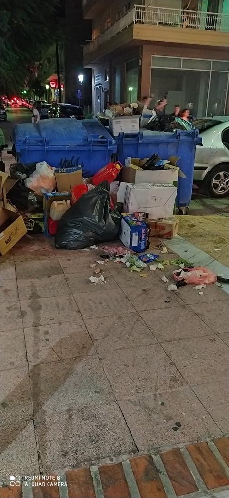 7. Ο παραλιακός πεζόδρομος είναι γεμάτος μικρούς κάδους που ξεχειλίζουν από σκουπίδια κάθε βράδυ. Έτυχε να μην φυσάει και δεν διασκορπίστηκαν σε όλη την παραλία και τη θάλασσα φέτος. Πόσο δύσκολο είναι να αδειάζουν 2 φορές τη μέρα; Αν δεν μπορείτε να τους αδειάζετε βγάλτε τους. Έγινε η ρύπανση συνήθεια.