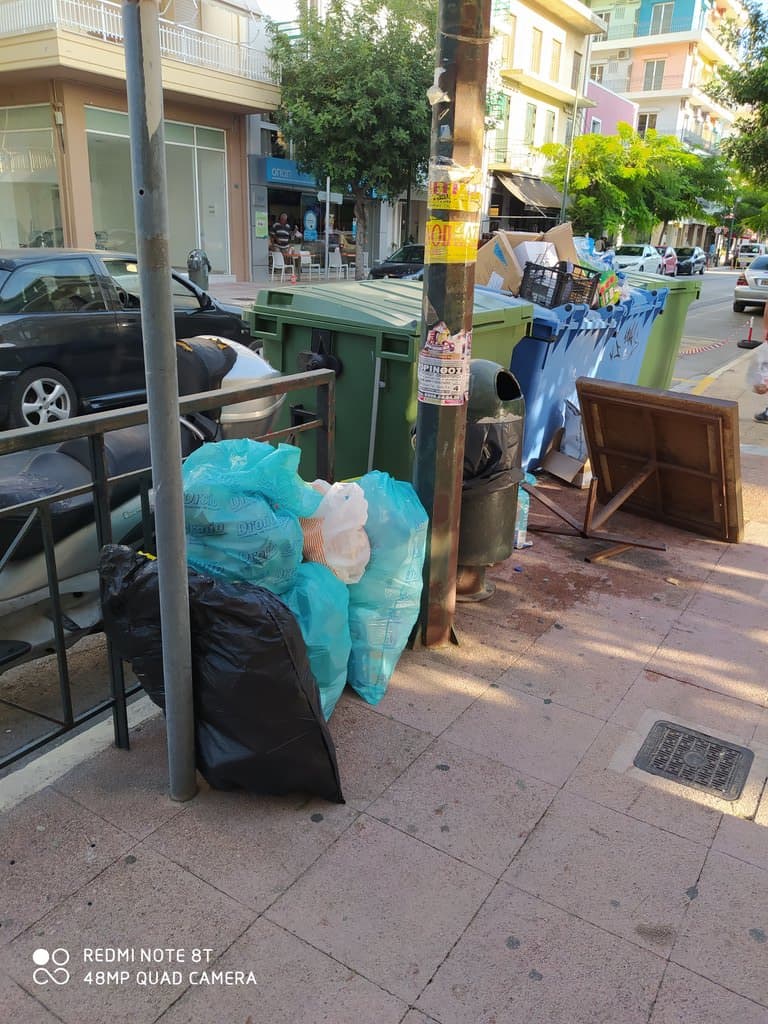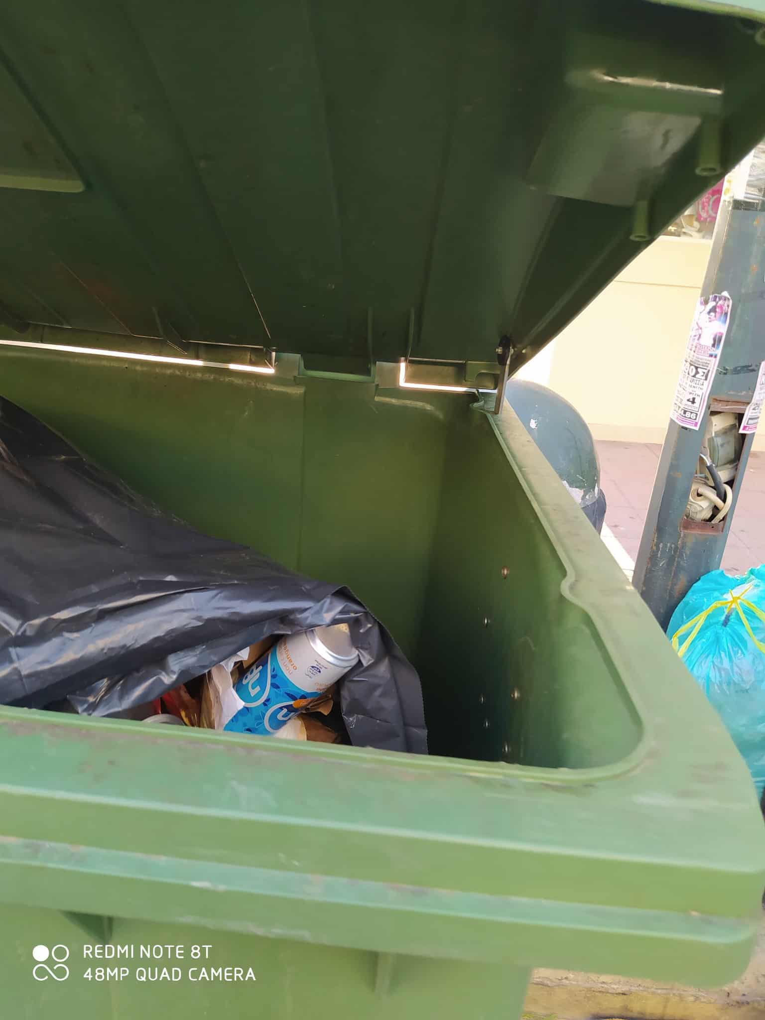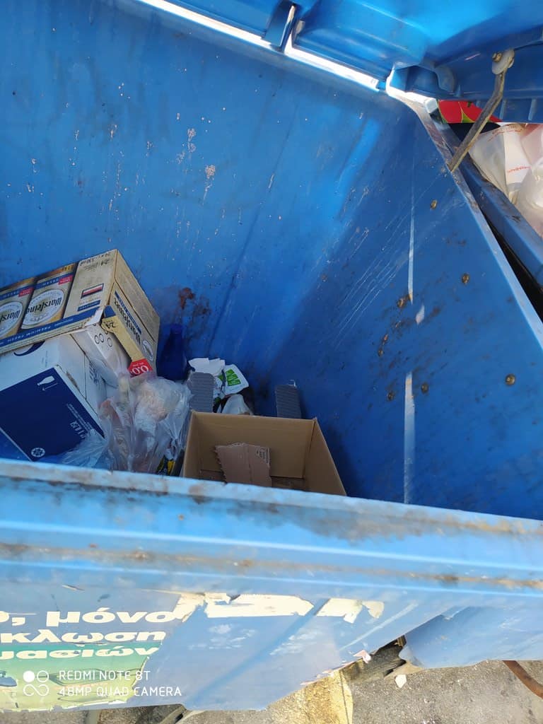 Ευχαριστώντας γιά τήν δημοσίευση, στέλνω, 7/9 18.10 φωτό. Οι 3 κάδοι δέν είναι γεμάτοι καί οι σακούλες στο πεζοδρόμιο. Ευχαριστώ.