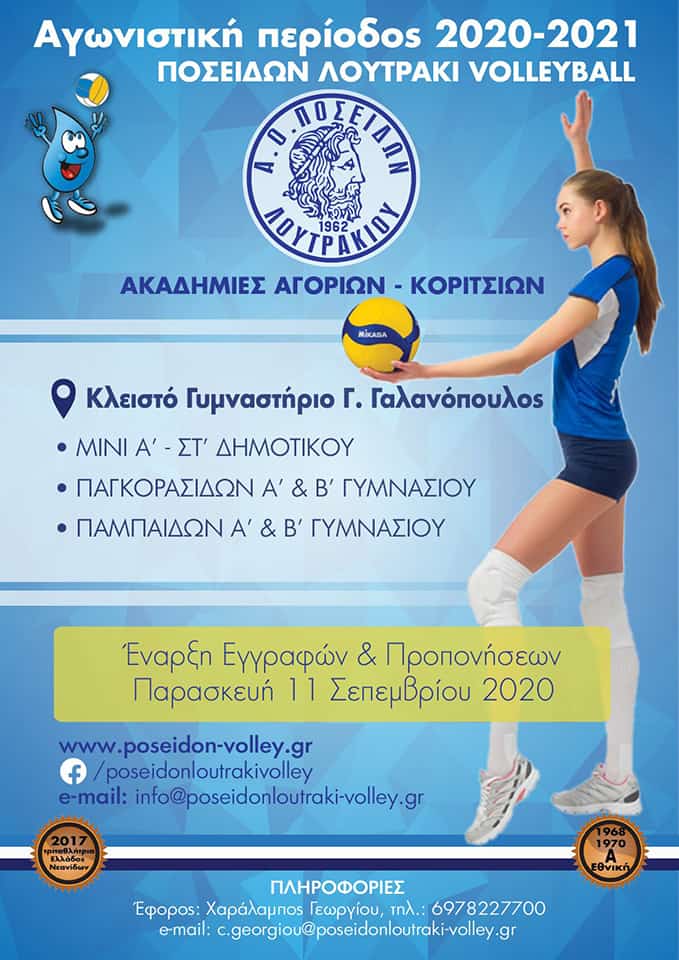 Την Παρασκευή 11 Σεπτεμβρίου ξεκινούν οι εγγραφές και οι προπονήσεις στο τμήμα volley του Ποσειδών Λουτράκι Volleyball.