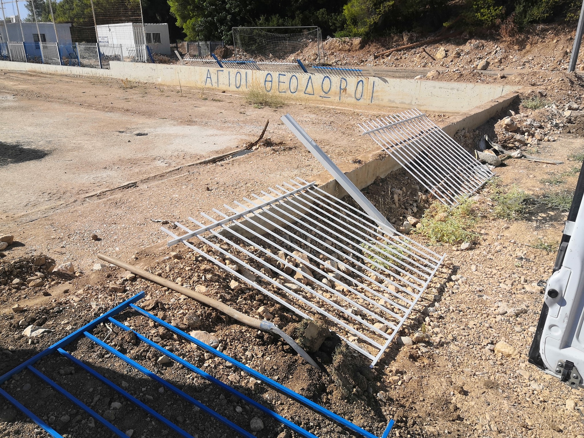 Οι εργασίες ανακατασκευής του γηπέδου των Αγίων Θεοδώρων είναι γεγονός.Υπενθυμίζεται ότι το γήπεδο υπέστη ολική καταστροφή από τις περσινές πλημμύρες .