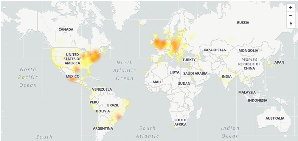 Σύμφωνα με το downdetector.com , το πρόβλημα εντοπίζεται κυρίως στις ανατολικές ΗΠΑ και την Ευρώπη.
