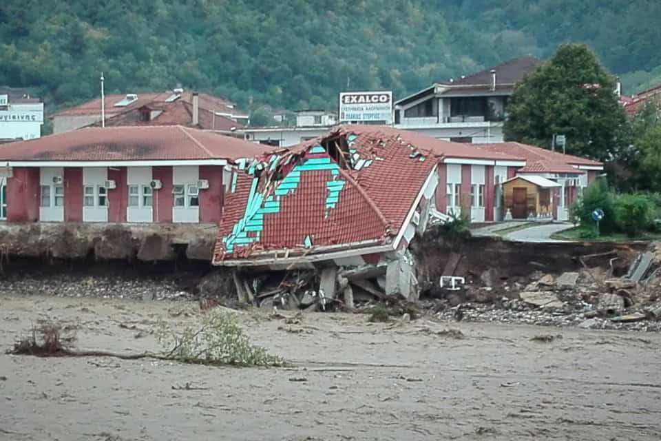 Η υπερχείλιση του Πάμισου ποταμού από τη μανία της κακοκαιρίας Ιανός που πλήττει τη χώρα, είχε ως αποτέλεσμα να καταρρεύσει μέρος του Κέντρου Υγείας στο Μουζάκι, που βρισκόταν πάνω στην όχθη του ποταμού.