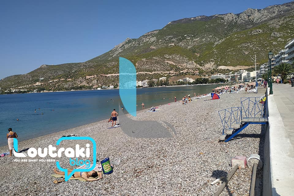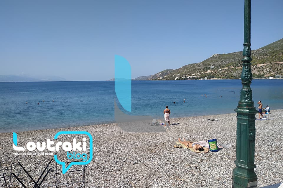 Με τον υδράργυρο να έχει σκαρφαλώσει και πάλι ψηλά, αρκετοί επισκέπτες που ήρθαν στην πόλη του Λουτρακίου για το Σαββατοκύριακο ξεχύθηκαν στην παραλία για να κάνουν το μπάνιο τους.