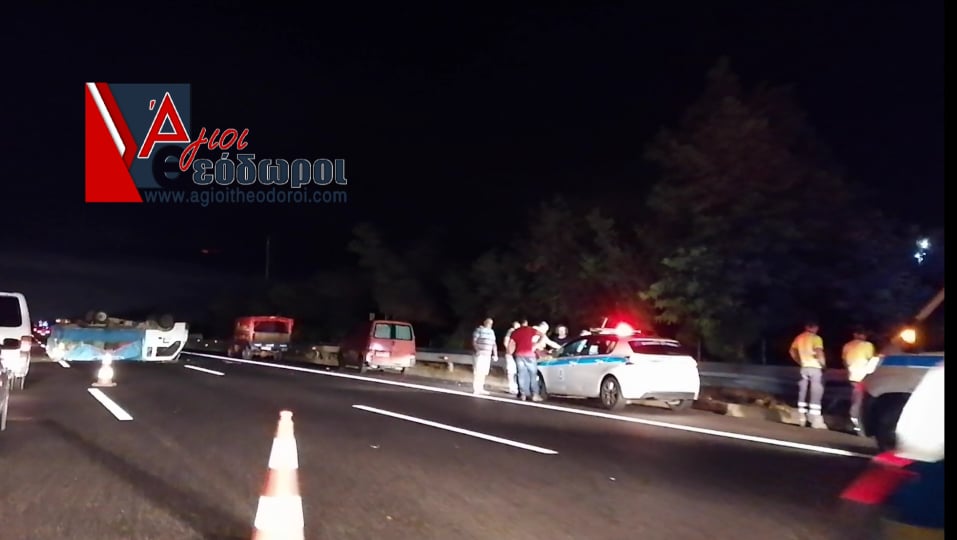 Στο ατύχημα ενεπλάκησαν 4 οχήματα, μεταξύ των οποίων και ένα φορτηγό το οποίο ανετράπη.