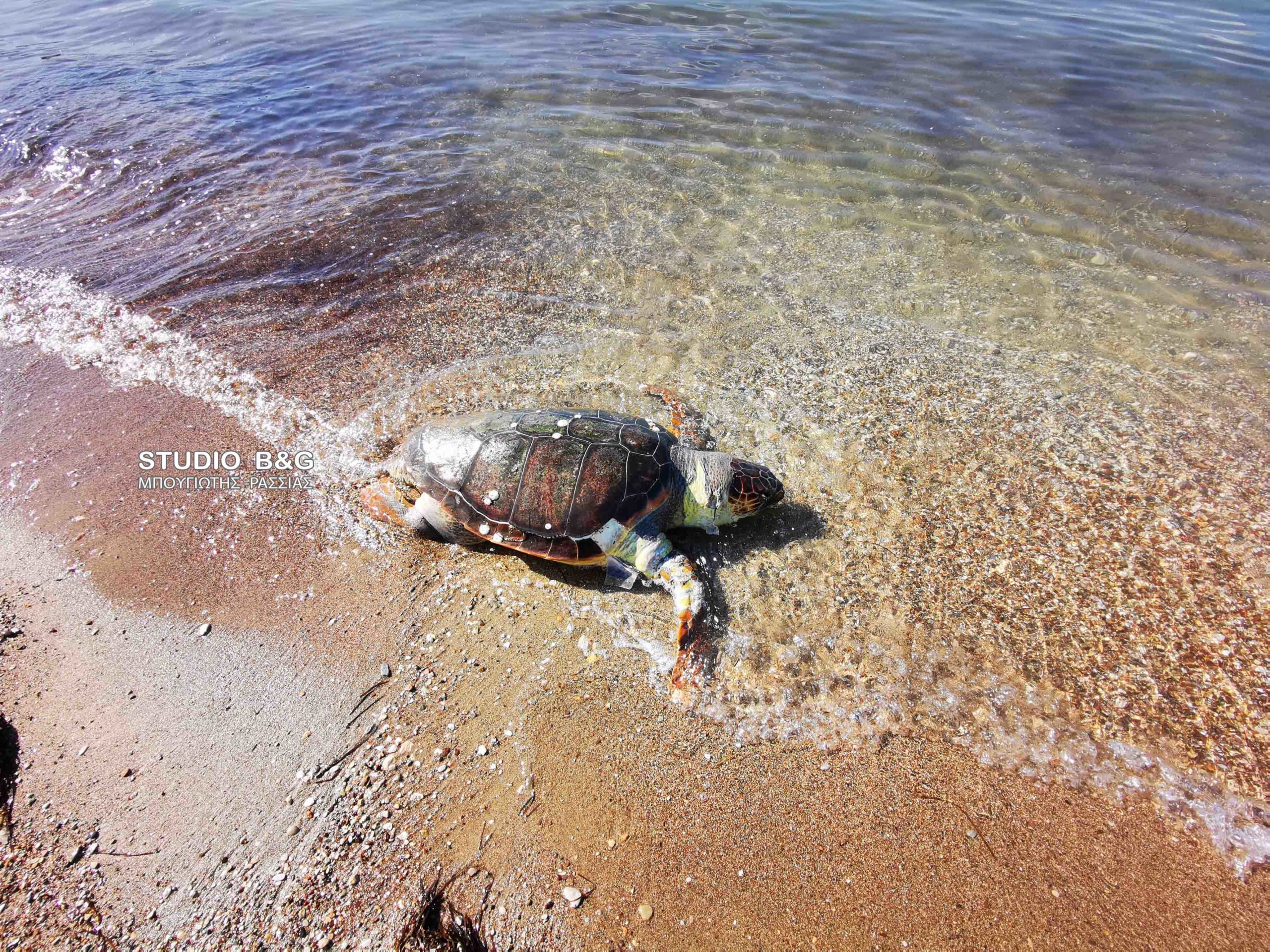 Μία ακόμα θαλάσσια χελώνα ξέβρασε το κύμα στην παραλία της Καραθώνας στο Ναύπλιο, Τετάρτη 14 Οκτωβρίου 2020..