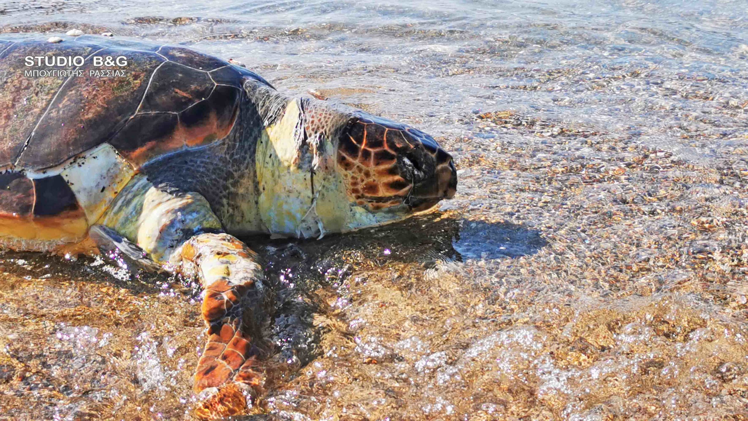 Η άτυχη χελώνα έφερε πολλαπλά χτυπήματα στο σώμα της και το κεφάλι της .