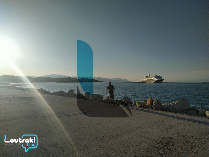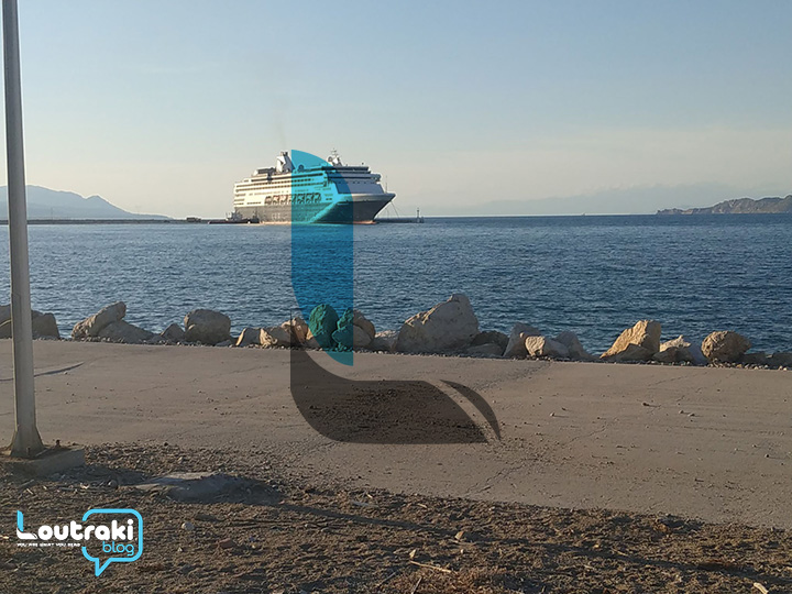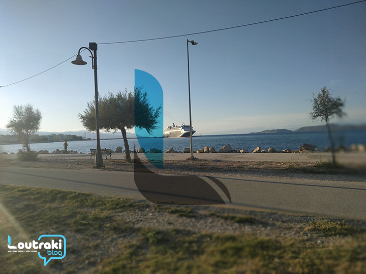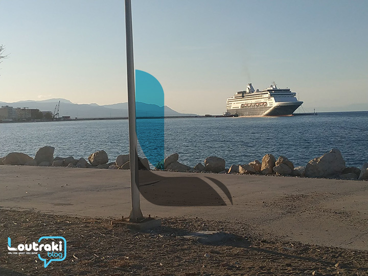 Με έκπληξη αντίκρισαν οι Κορίνθιοι το τεράστιο επιβατηγό πλοίο στο λιμάνι της πόλης.