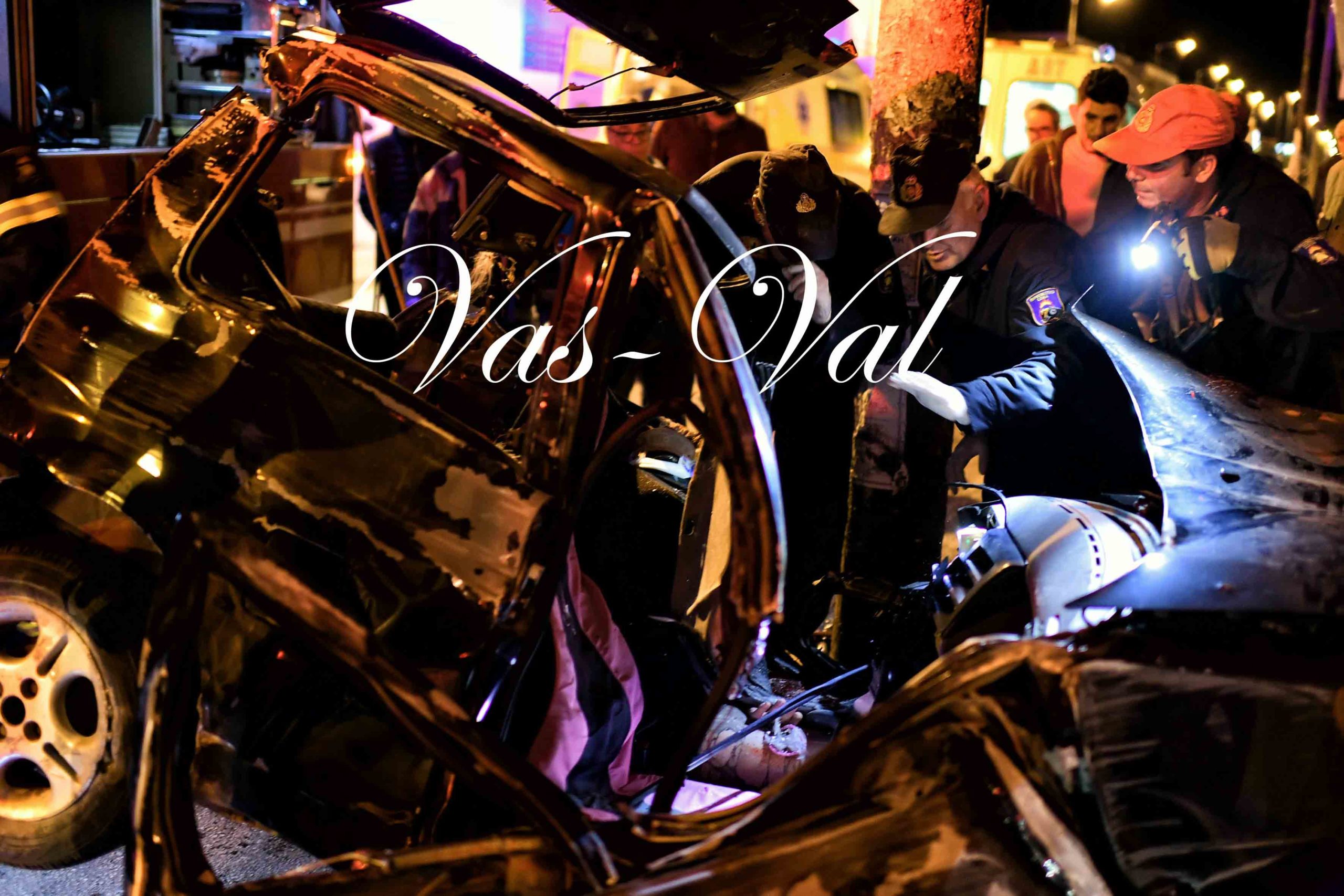 Σε άμορφη μάζα σιδερικών μετατράπηκε ένα μικρό ΙΧ το οποίο στη 01:30 τα ξημερώματα εξετράπη της πορείας του και καρφώθηκε σε κολώνα. Στο σημείο έσπευσαν δυνάμεις της Πυροσβεστικής, που κατάφεραν έπειτα από αγωνιώδεις προσπάθειες να απεγκλωβίσουν οδηγό – συνοδηγό.