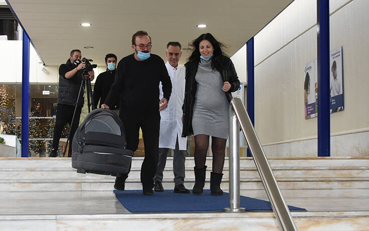Φανερά χαρούμενοι και με τεράστια χαμόγελα να κοσμούν τα πρόσωπα τους, η οικογένεια Γονίδη πήρε εξιτήριο και κατευθύνθηκε στο σπίτι του.
