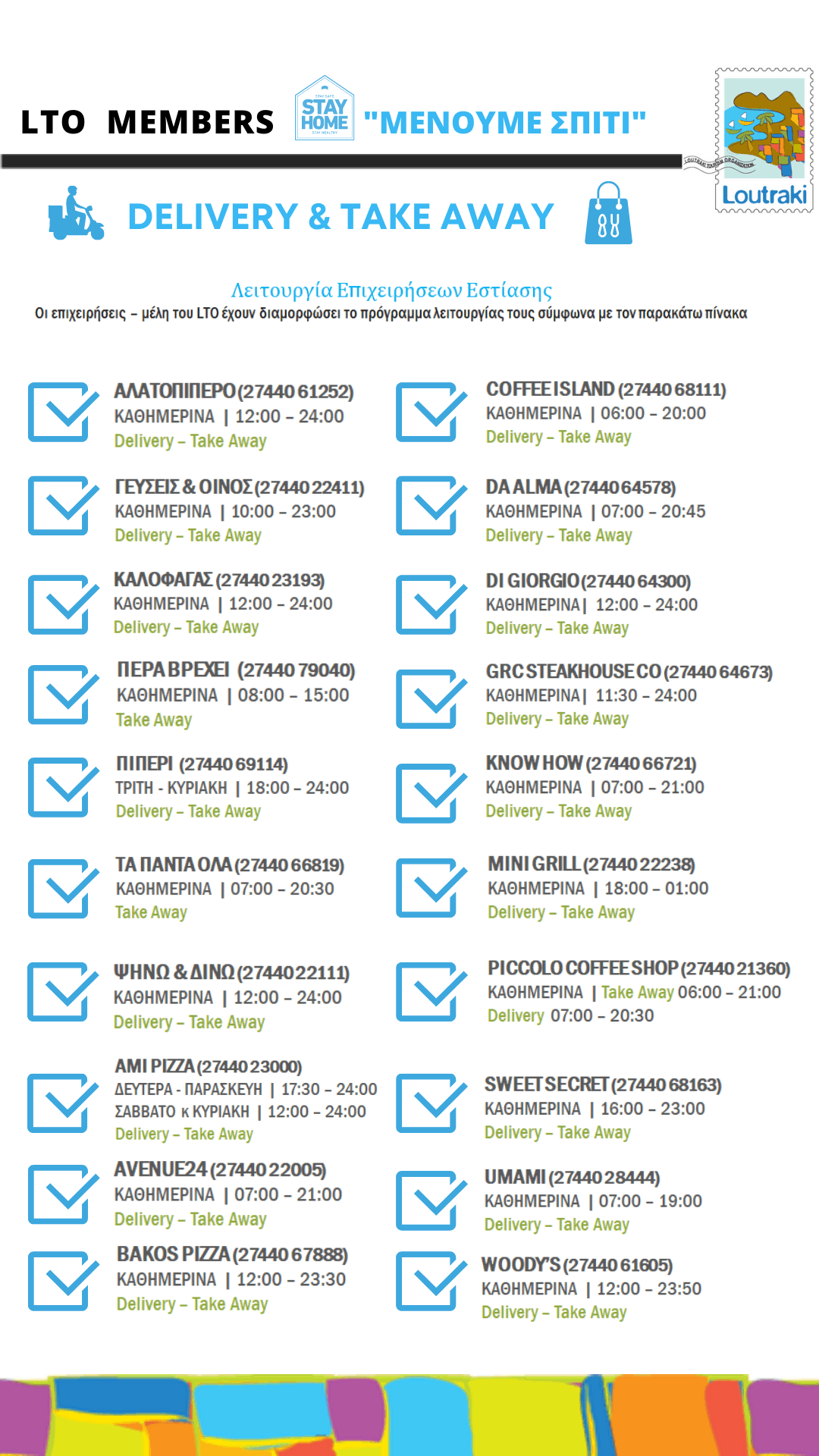 Στηρίζουμε Λουτράκι – Οι επιχειρήσεις, μέλη του LTO, που διαθέτουν delivery και take away