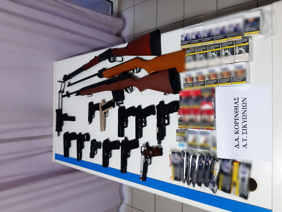 Η σύλληψη έγινε καθώς σε έρευνα στο κατάστημά του βρέθηκαν και κατασχέθηκαν τρία αεροβόλα πιστόλια, εννέα συσκευασίες λαθραίου καπνού συνολικού βάρους 450 γραμμαρίων, και 53 πακέτα λαθραίων τσιγάρων.