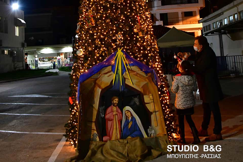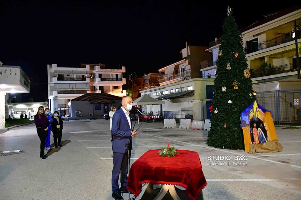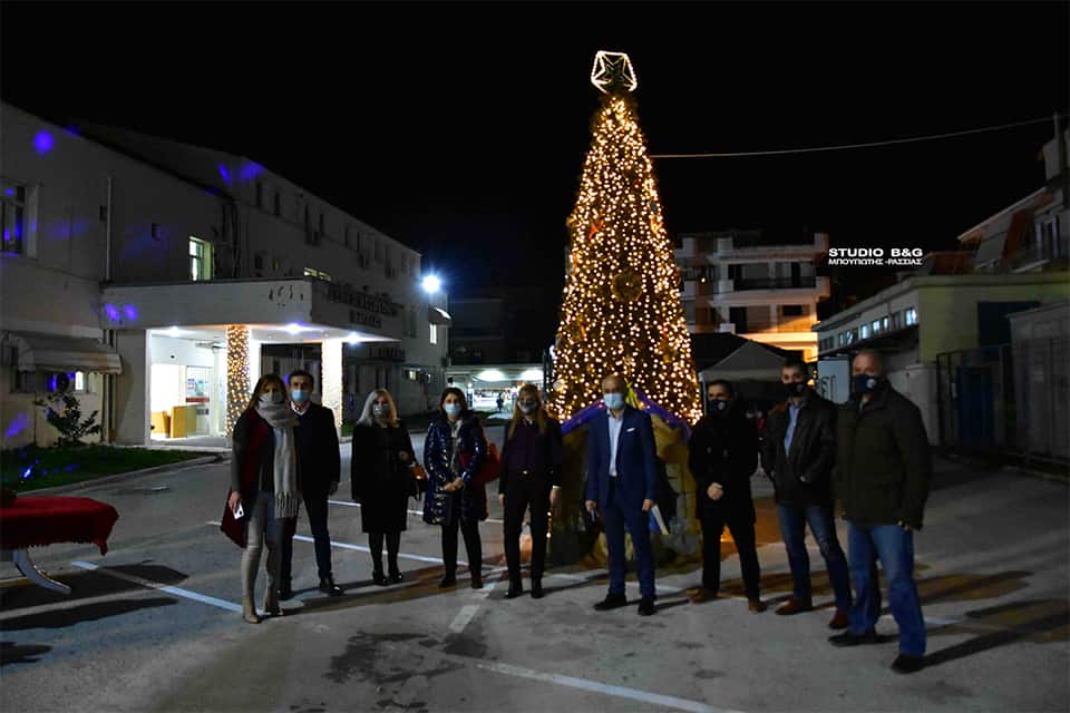 Σε μία λιτή τελετή ο Δήμαρχος Ναυπλιέων Δημήτρης Κωστούρος άναψε τα λαμπιόνια του Χριστουγεννιάτικου δένδρου στο προαύλιο του Νοσοκομείου στο Ναύπλιο.