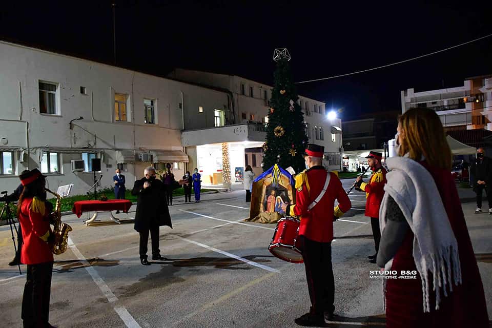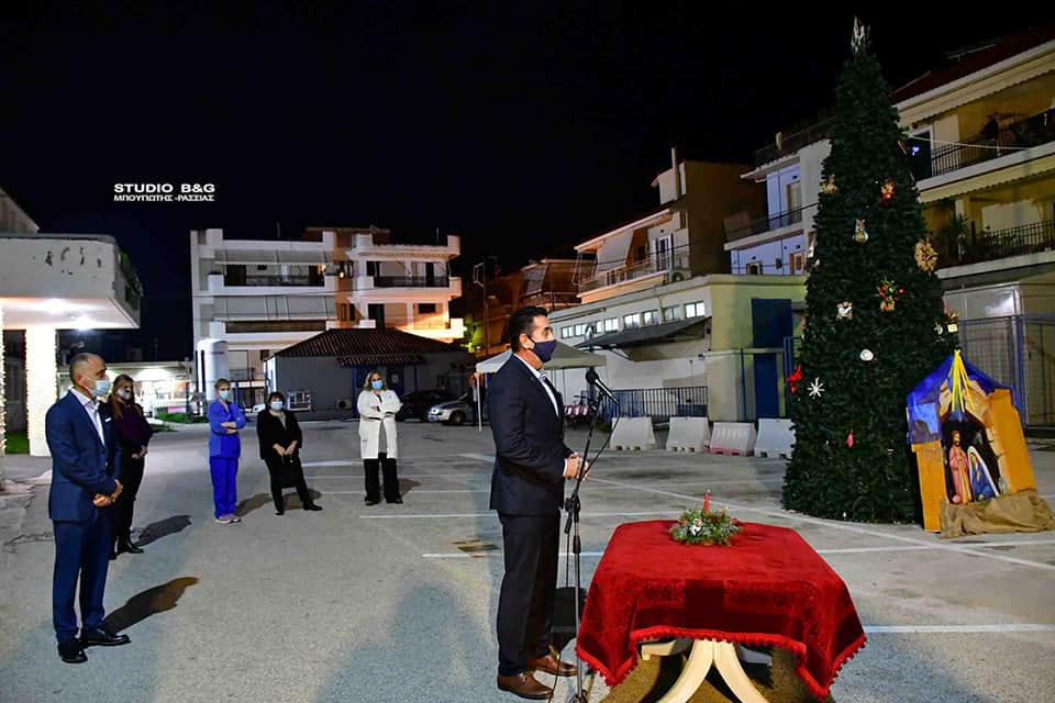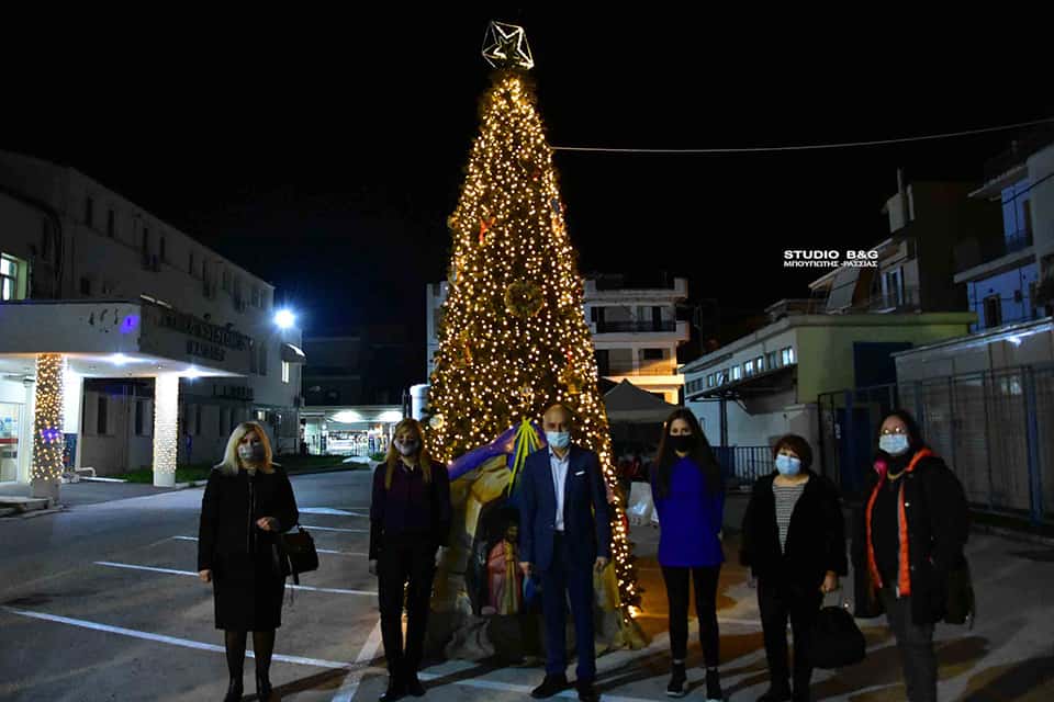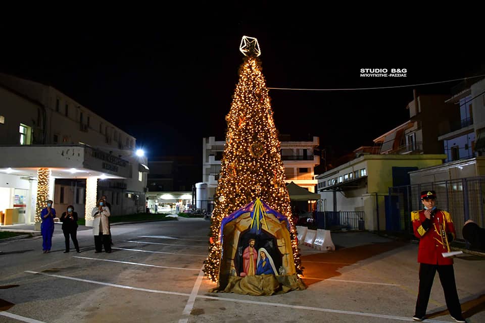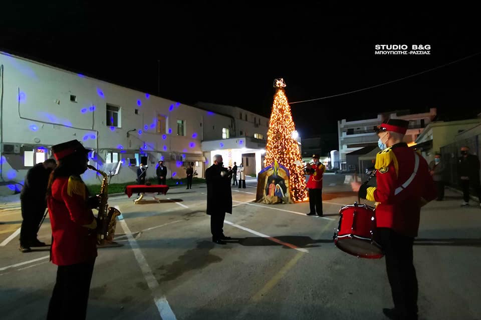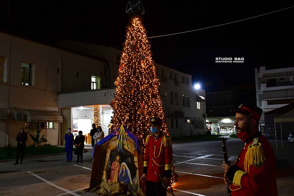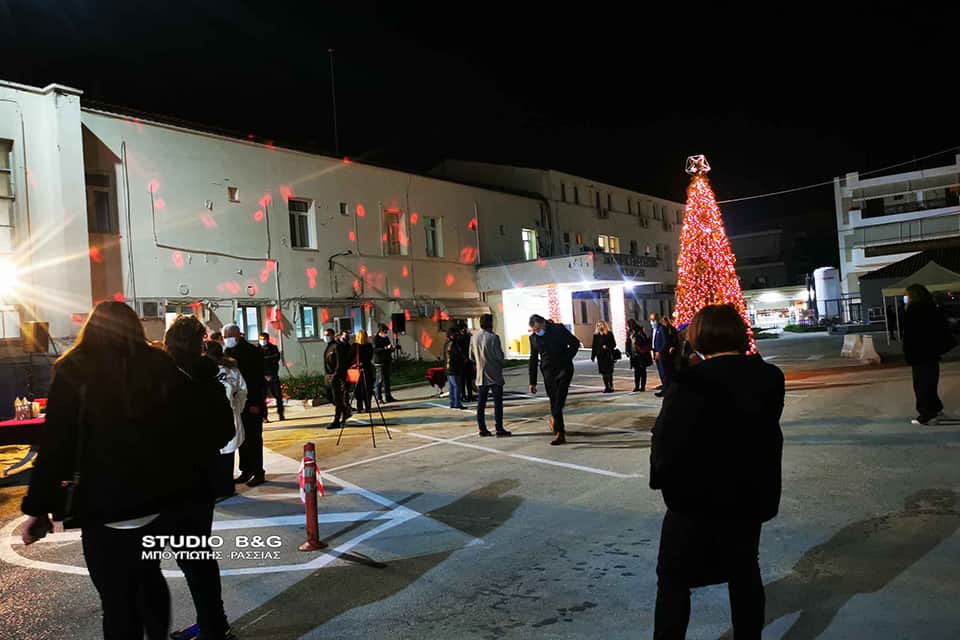 Στο προαύλιο του Νοσοκομείου Ναυπλίου άναψε το φετινό Χριστουγεννιάτικο Δέντρο του Δήμου Ναυπλιέων, Τετάρτη 16 Δεκεμβρίου 2020.