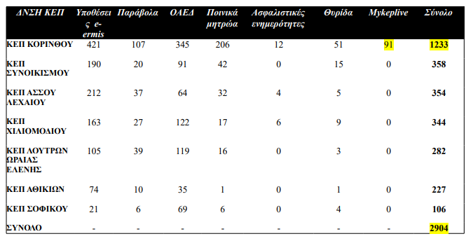 Ειδικότερα, το μήνα Νοέμβριο διεκπεραιώθηκαν 2.904 υποθέσεις .