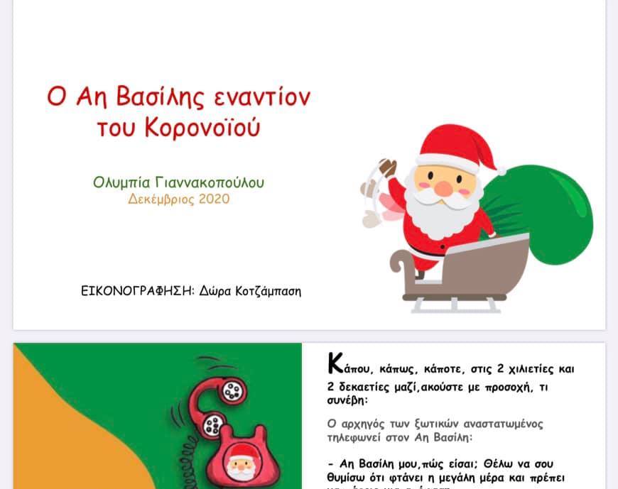 Oι μαθητές της Β τάξης του 3ου δημοτικού σχολείου Λουτρακίου, μαζί με τη δασκάλα τους κ. Ολυμπία Γιαννακοπούλου, έφτιαξαν ένα όμορφο ακουστικό παραμύθι με τίτλο «O Αη Βασίλης εναντίον του Κορονοϊού».