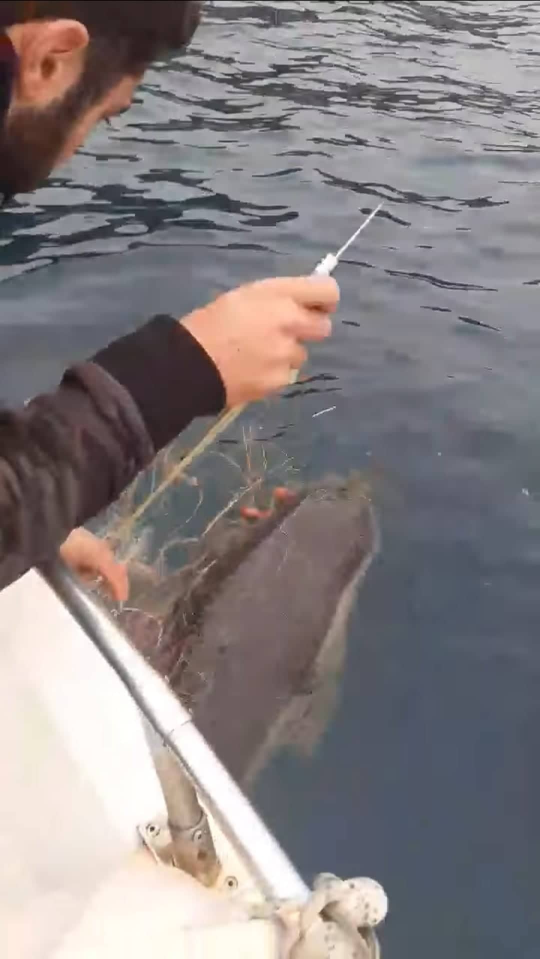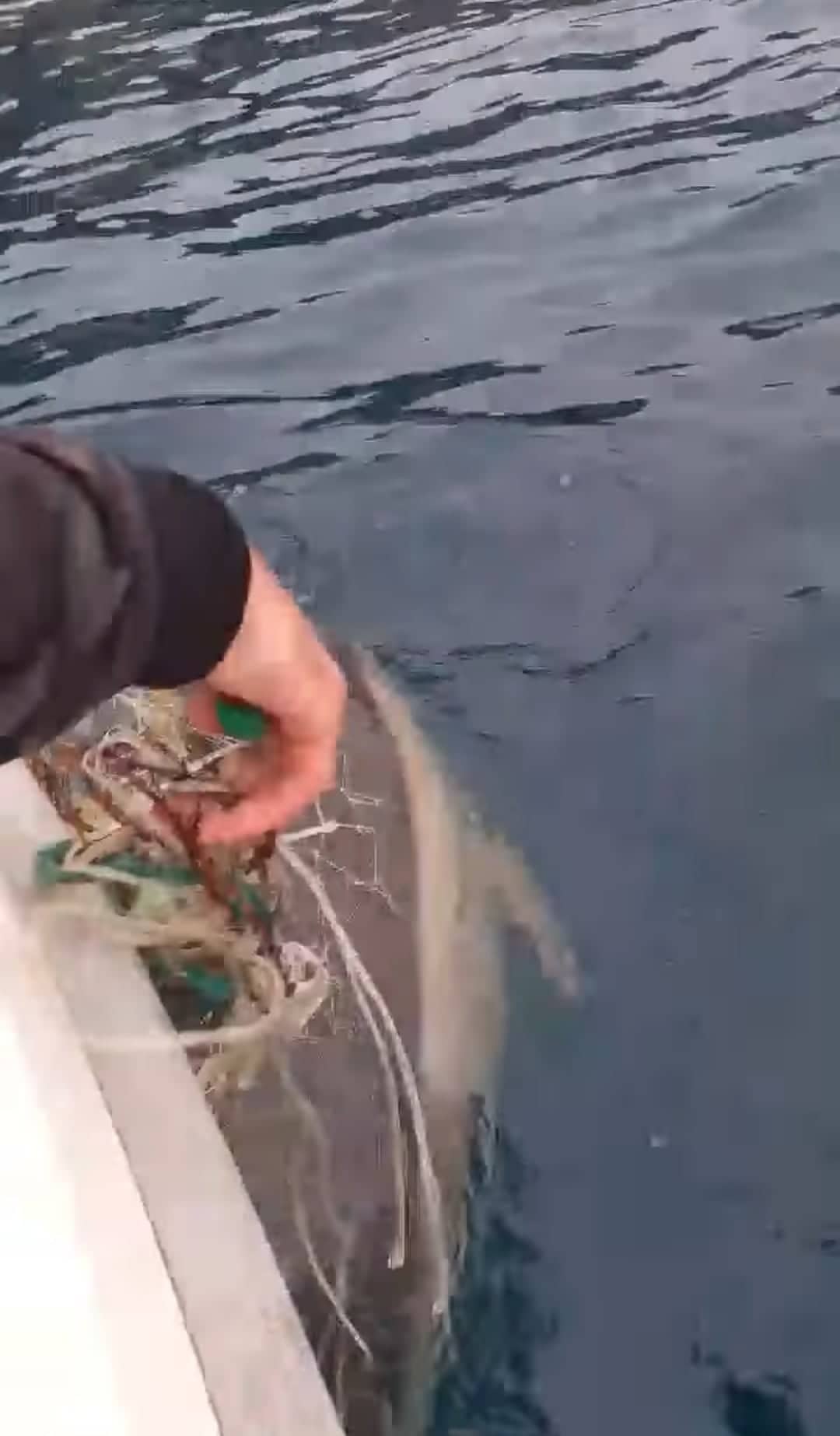 Το δελφινάκι μετά την απελευθέρωση του κολύμπησε δίπλα απο την βάρκα τους και αυτό ήταν και το μεγάλο του ευχαριστώ στους σωτήρες του.
