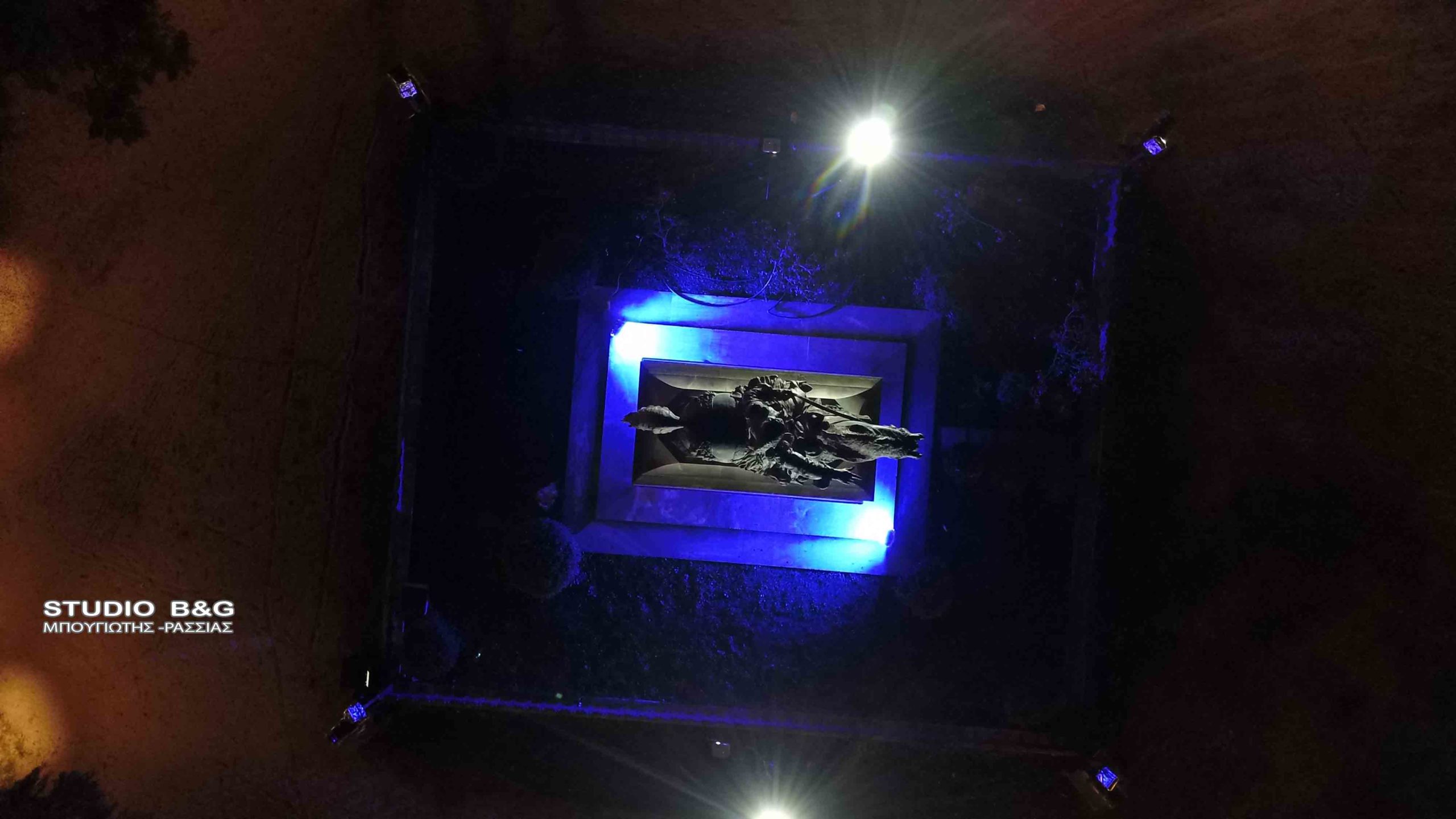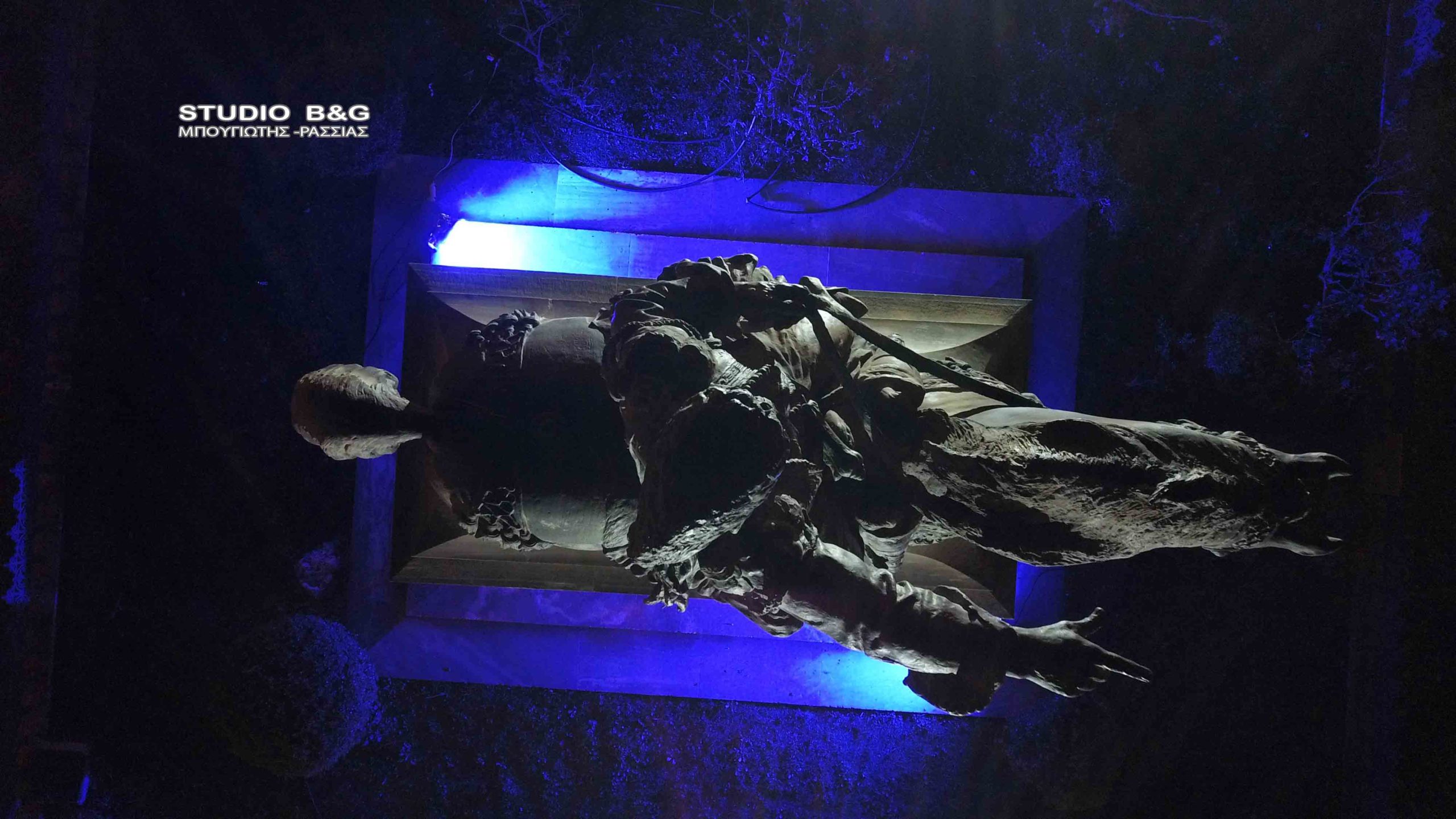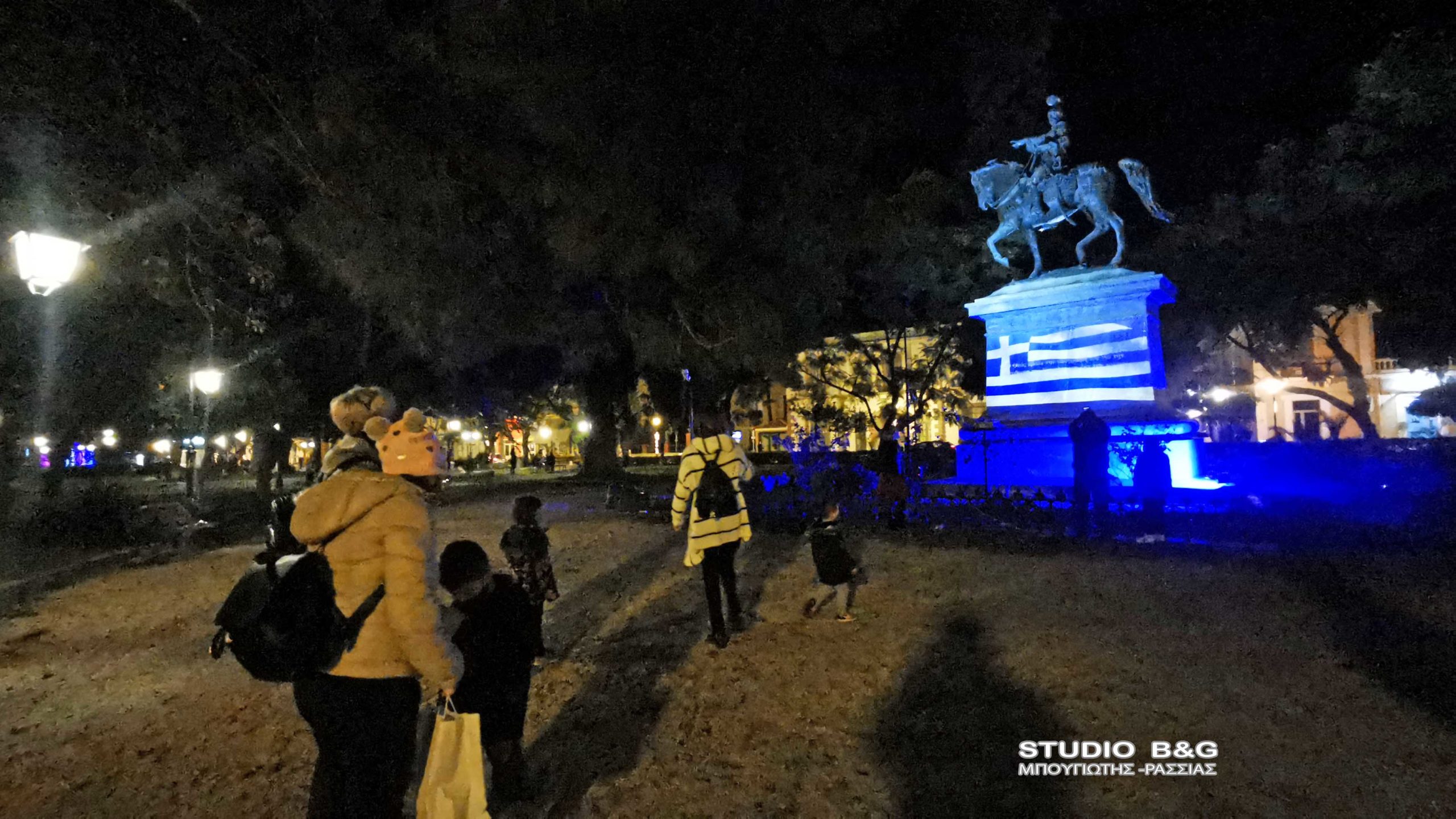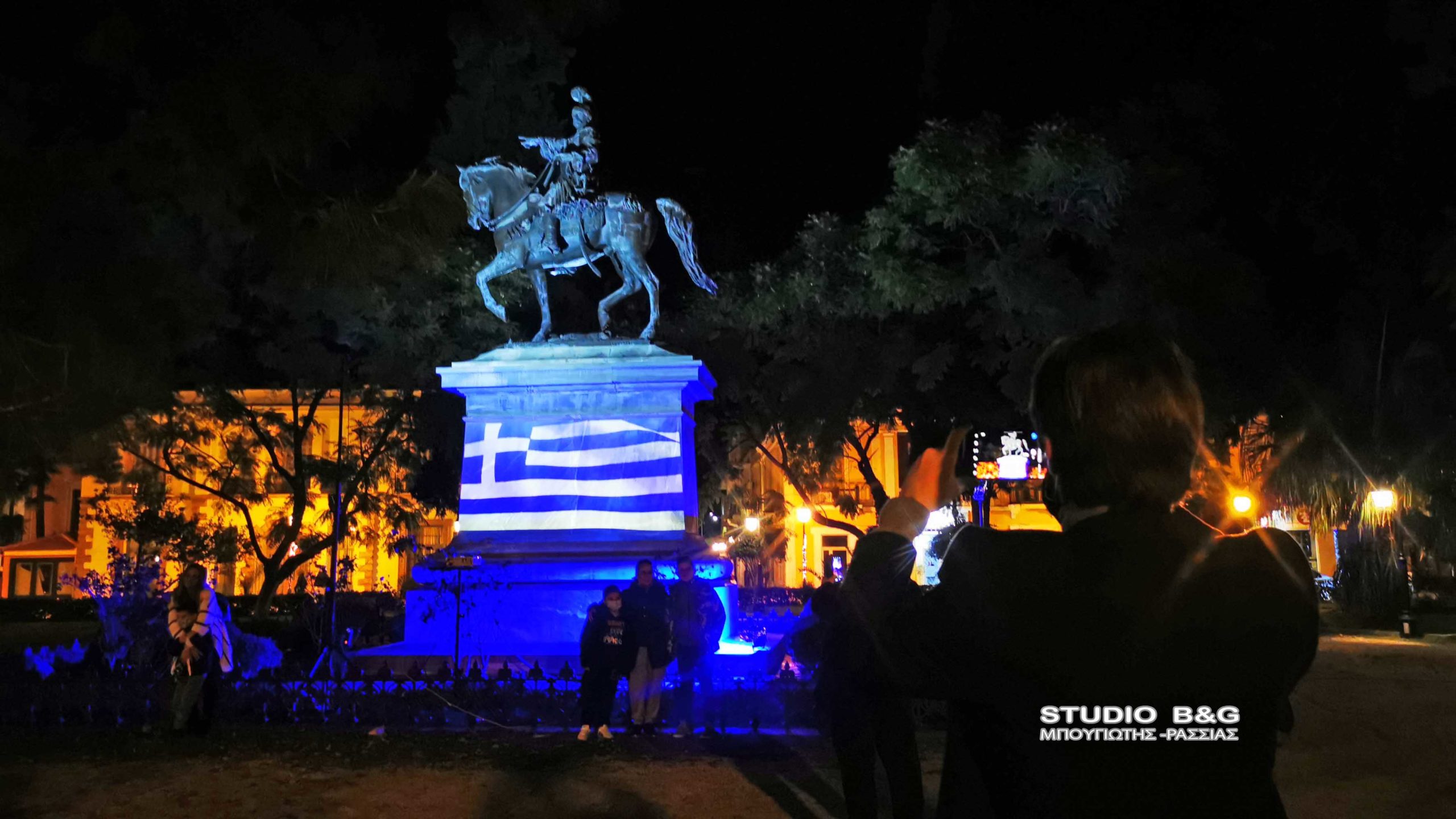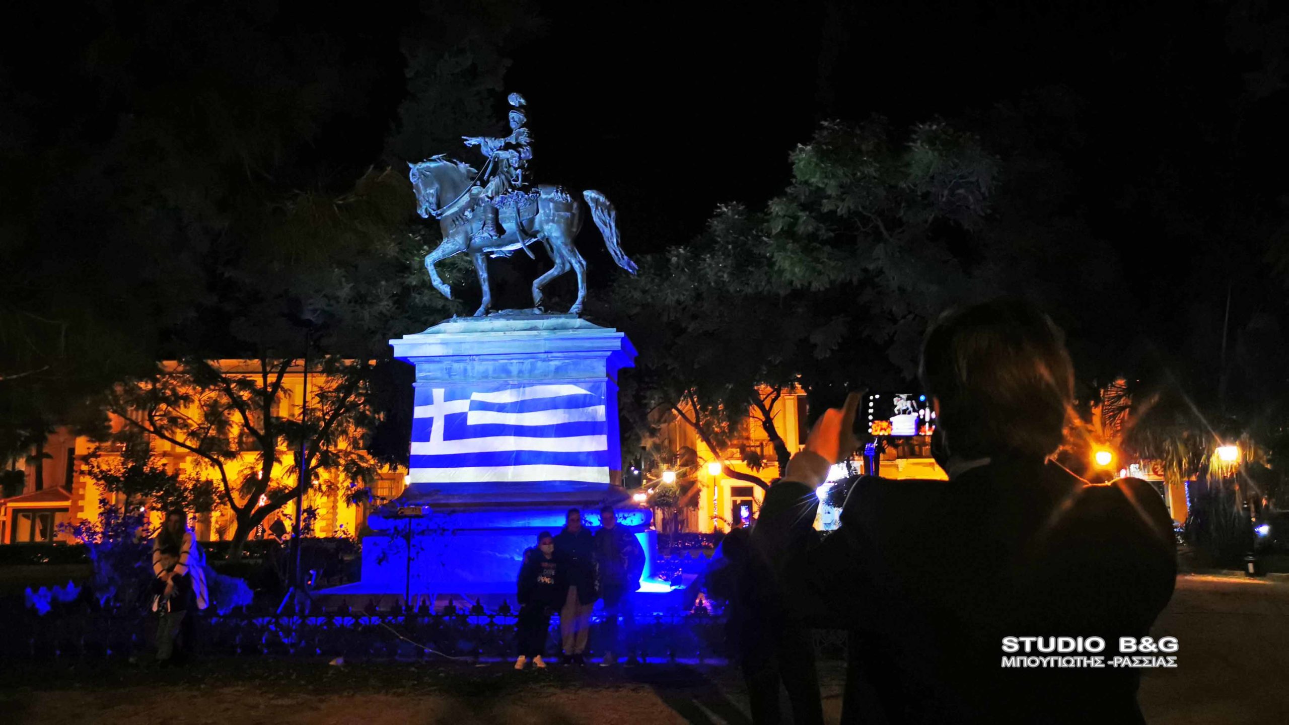 Με την Ελληνική Σημαία φωτίστηκε το άγαλμα του Κολοκοτρώνη στο ομώνυμο πάρκο του Δήμου Ναυπλίου στα πλαίσια της έναρξης των εορτασμών για τα διακόσια χρόνια από την Εθνική παλιγγενεσία , Παρασκευή 1 Ιανουαρίου 2020.