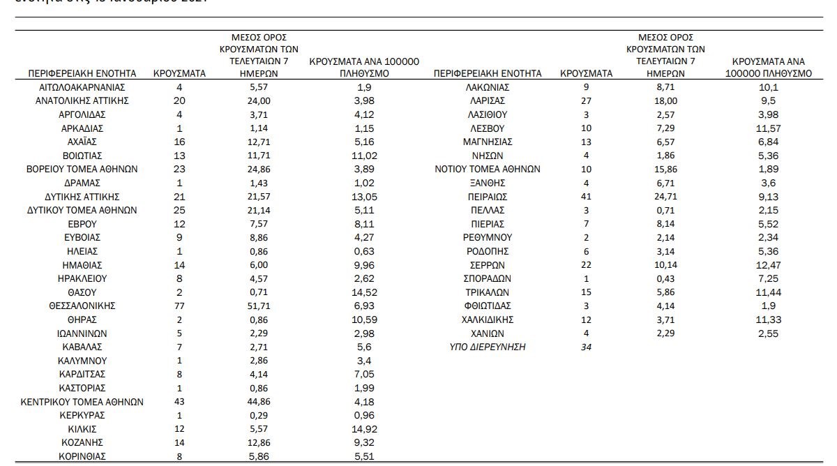 Η έκθεση του ΕΟΔΥ για σήμερα 15 Ιανουαρίου 2021, αναφέρει