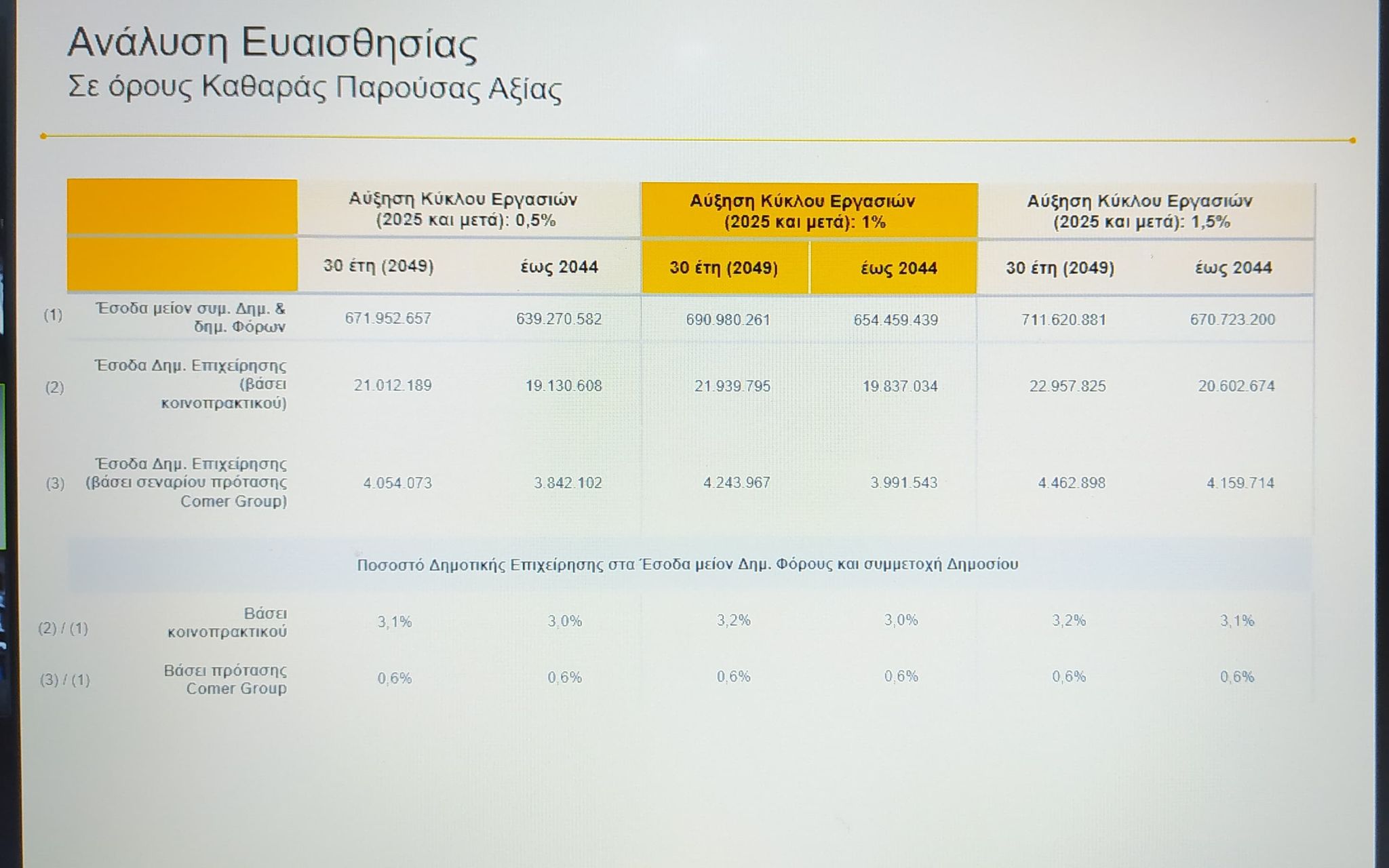 Στη συνεδρίαση συμμετείχαν οι νομικοί από πλευράς Δήμου κ.κ. Τζοάνος και Καλτσάς, ενώ την μελέτη της εταιρείας παρουσίασε στο δημοτικό συμβούλιο ο εκπρόσωπός της κ. Βασιλείου.