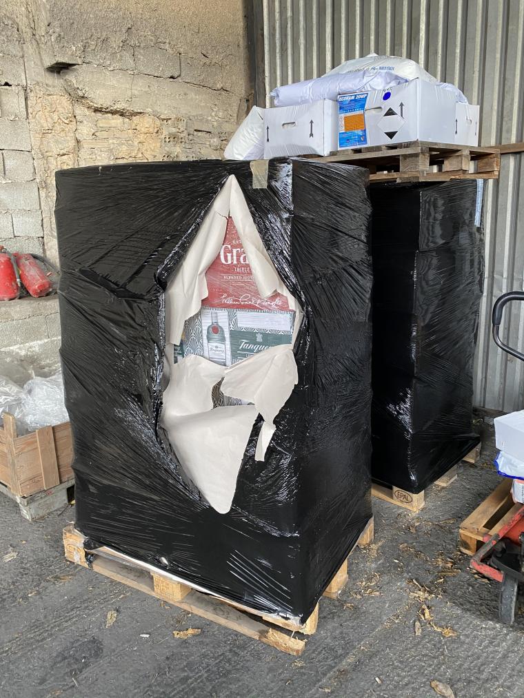 Κούτες με ποτά στην αποθήκη της οργάνωσης