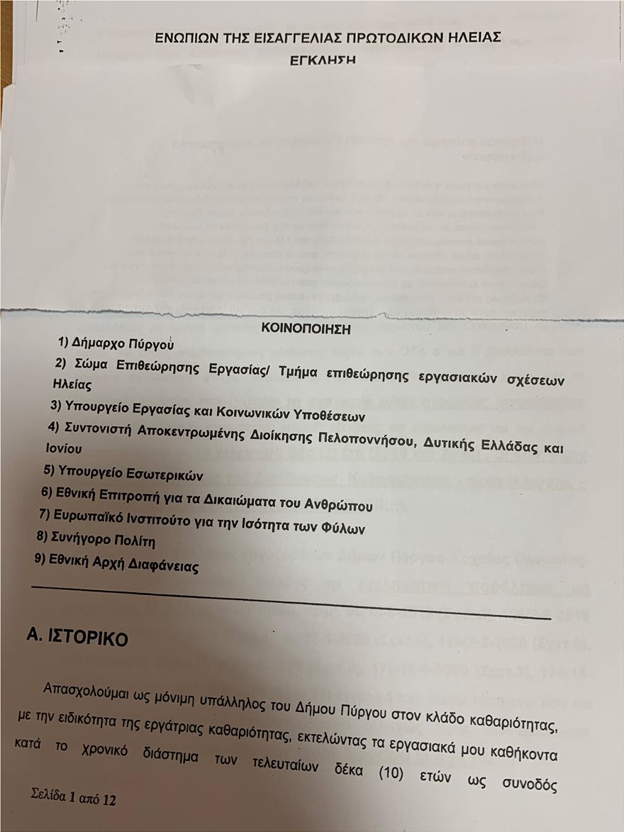 Η καταγγελία έφτασε επίσης στο Σώμα Επιθεωρητών Εργασίας, στα Υπουργεία Εργασίας και Εσωτερικών, στην Εθνική Επιτροπή για το Δικαιώματα του Ανθρώπου, στο Ευρωπαϊκό Ινστιτούτο για την Ισότητα των Φύλων, στον Συνήγορο του Πολίτη και στην Εθνική Αρχή Διαφάνειας.