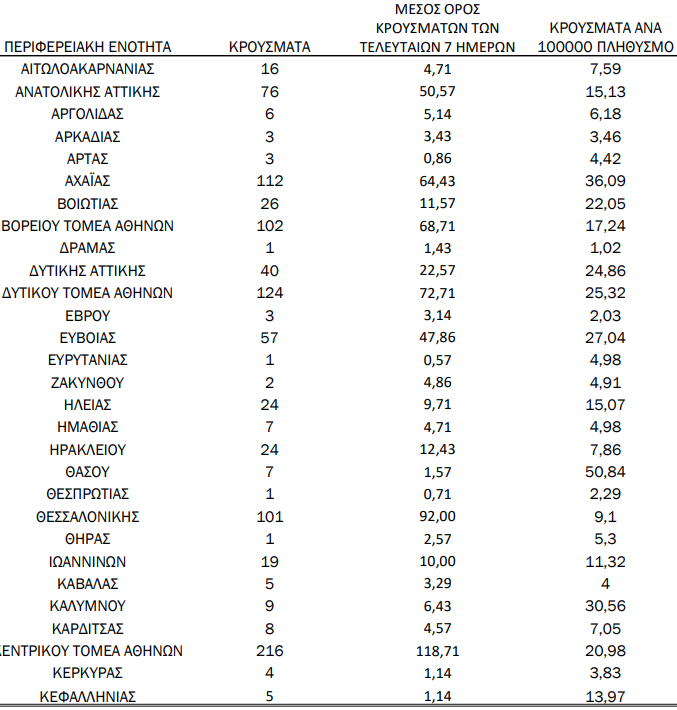Παράλληλα, σε πολύ υψηλά επίπεδα βρίσκεται η Αχαΐα με 112 νέα περιστατικά, ενώ η Θεσσαλονίκη κατέγραψε 101 νέα κρούσματα.