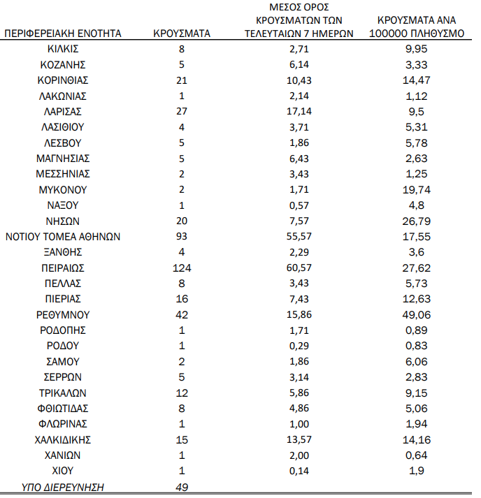 Η κατανομή των κρουσμάτων κορωνοϊού