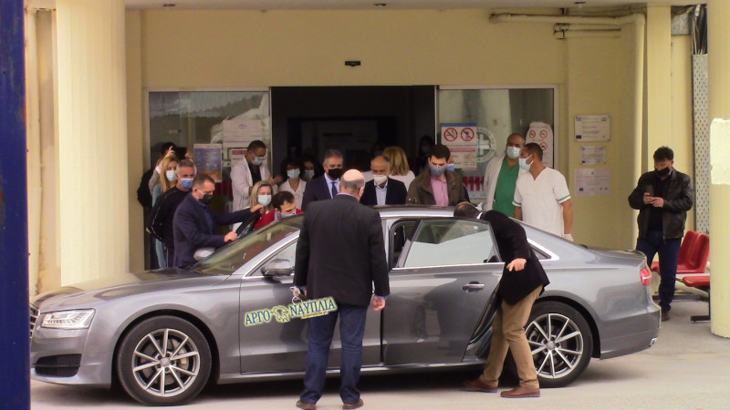 Τον τέως Βασιλιά υποδέχθηκαν ο Διοικητής 6ης ΥΠΕ Γιάννης Καρβέλης και ο Διοικητής του Νοσοκομείου Αργολίδας Θοδωρής Βασιλόπουλος.