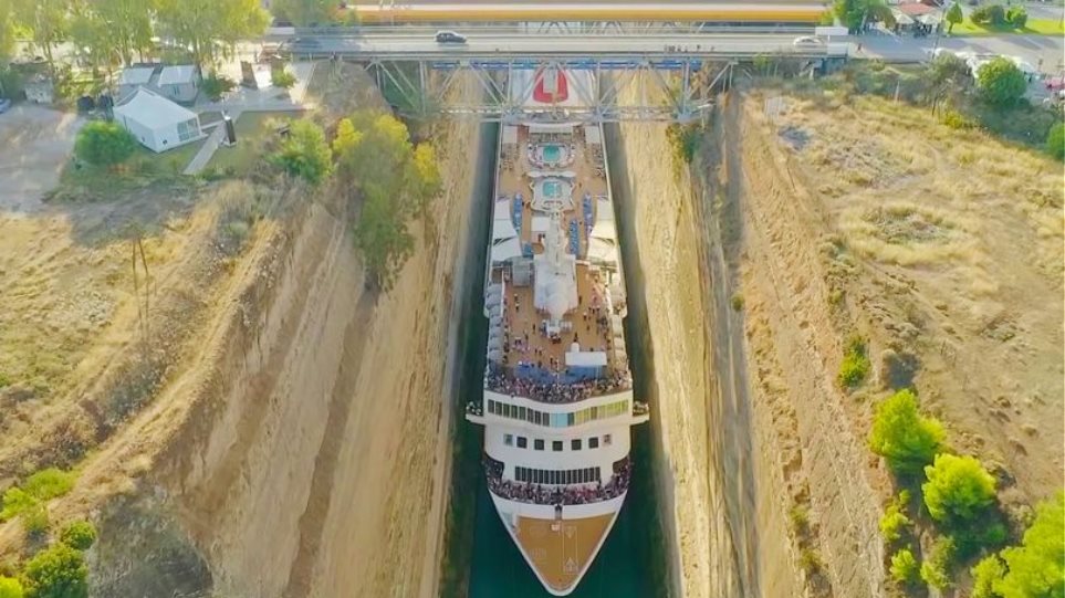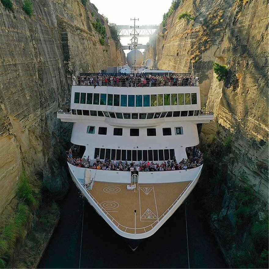 Οι 1.200 επιβαίνοντες κρατούσαν την ανάσα τους καθώς το κρουαζιερόπλοιο πλάτους 22,5 μέτρων περνούσε μέσα από το στενό πέρασμα του Ισθμού της Κορίνθου, πλάτους μόλις 24 μέτρων και μήκους 6,3 χιλιομέτρων.
