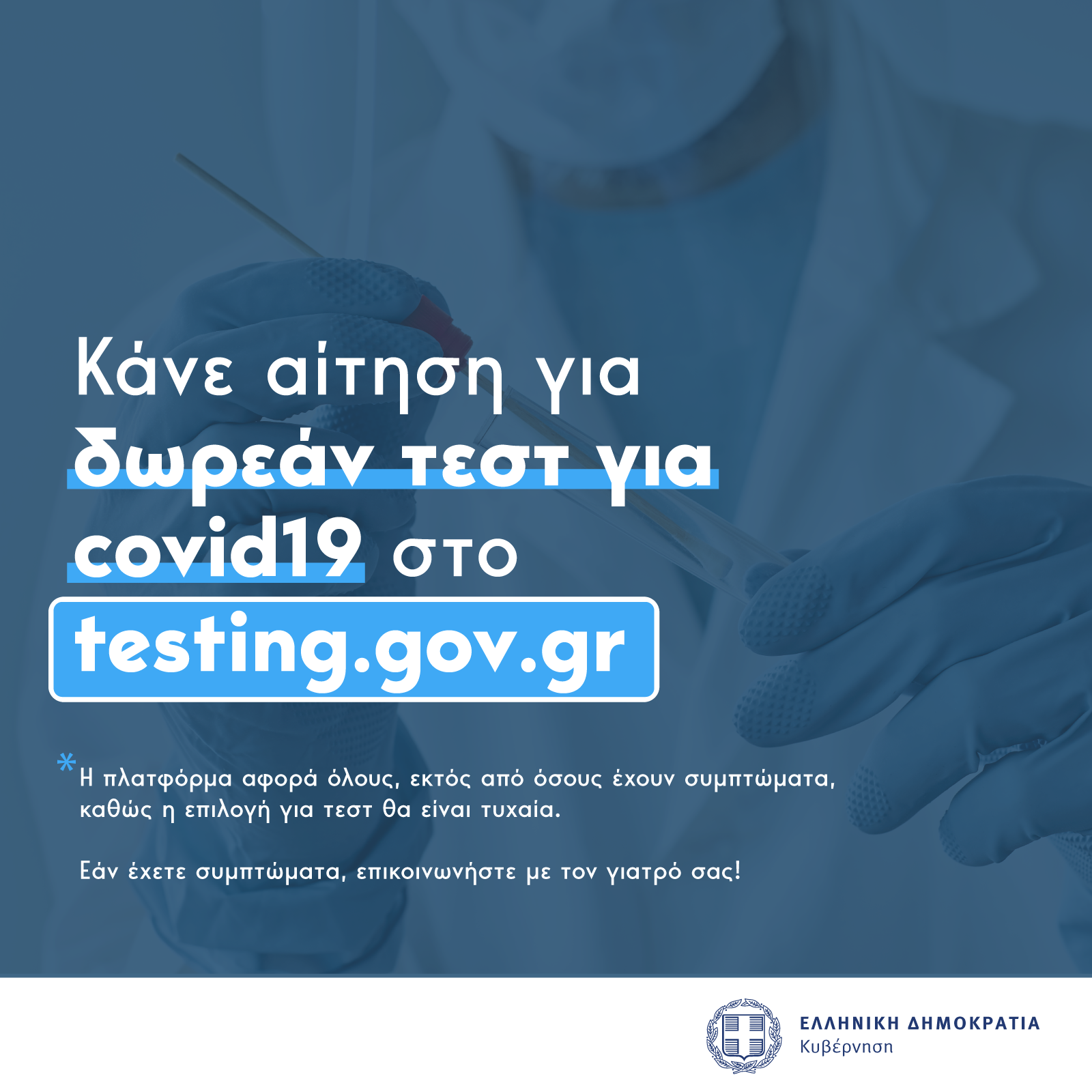 Ενημέρωση προς τους Δημότες. Αίτηση δωρεάν ελέγχου COVID-19