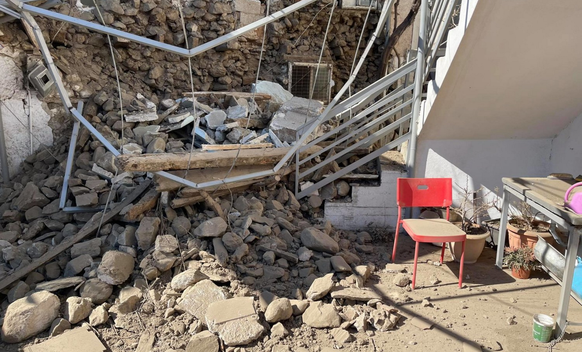 Ο σεισμός των 6 Ρίχτερ που χτύπησε την Ελασσόνα στις 12:16 μετά το μεσημέρι προκάλεσε πολλές υλικές ζημιές σε σπίτια στο χωριό Μεσοχώρι.