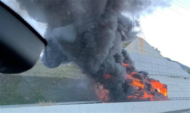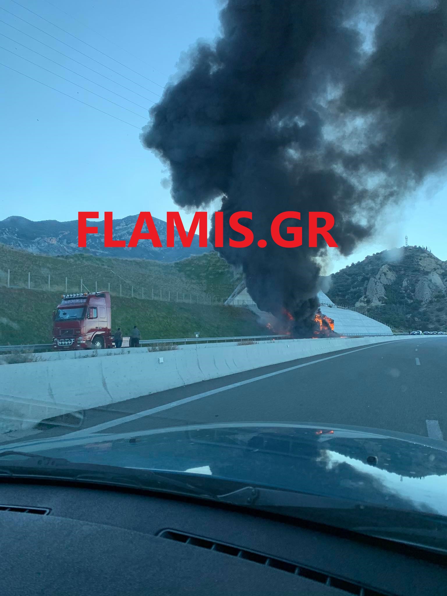 Κόλαση φωτιάς στην Ολυμπία Οδό στο 124ο χιλιόμετρο ανάμεσα σε Κιάτο και Ξυλόκαστρο. Νταλίκα άρπαξε φωτιά ενώ ήταν εν κινήσει.