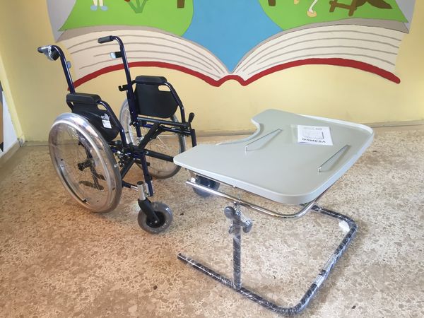 Το σχολικό υλικό αφορά σε θρανία, καθίσματα, πίνακες, εκπαιδευτικό υλικό–επιμορφωτικά παιχνίδια, αναπηρικό αμαξίδιο καθώς και το αντίστοιχο ειδικό θρανίο.