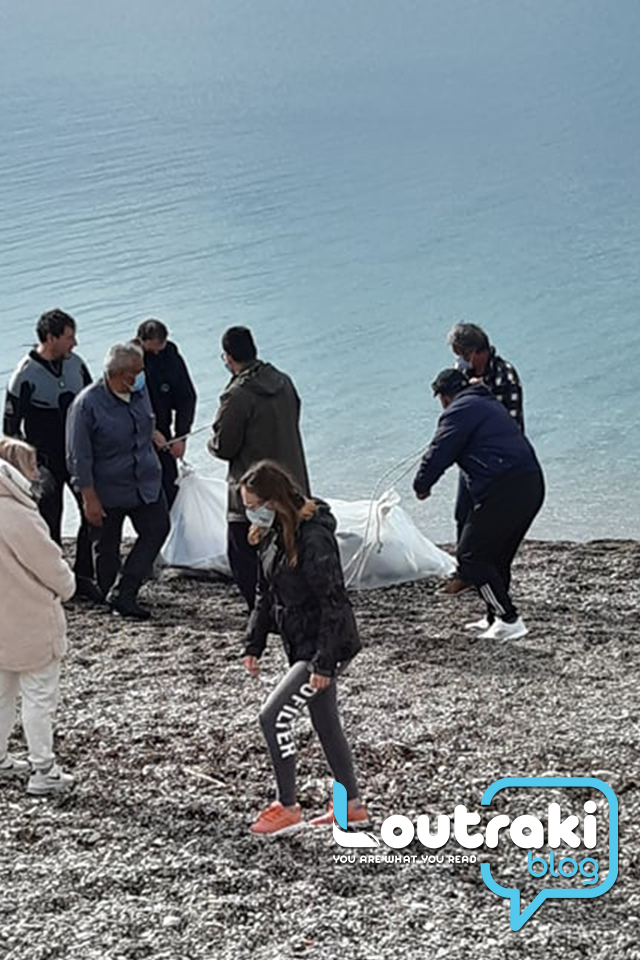 Θλίψη προκαλεί η εικόνα  ανάσυρσης του μικρού νεκρού δελφινιού από την εθελοντική ομάδα αυτοδυτών Λουτρακίου