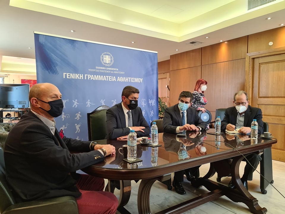 Ο Δήμαρχος Λουτρακίου – Περαχώρας – Αγίων Θεοδώρων Γεώργιος Αλκ. Γκιώνης και ο Περιφερειάρχης Πελοποννήσου Παναγιώτης Νίκας, παρουσία του Υφυπουργού Έρευνας και Τεχνολογίας Χρίστου Δήμα συναντήθηκαν με τον Υφυπουργό Πολιτισμού και Αθλητισμού Λευτέρη Αυγενάκη, το μεσημέρι της Τρίτης 30 Μαρτίου 2021.
