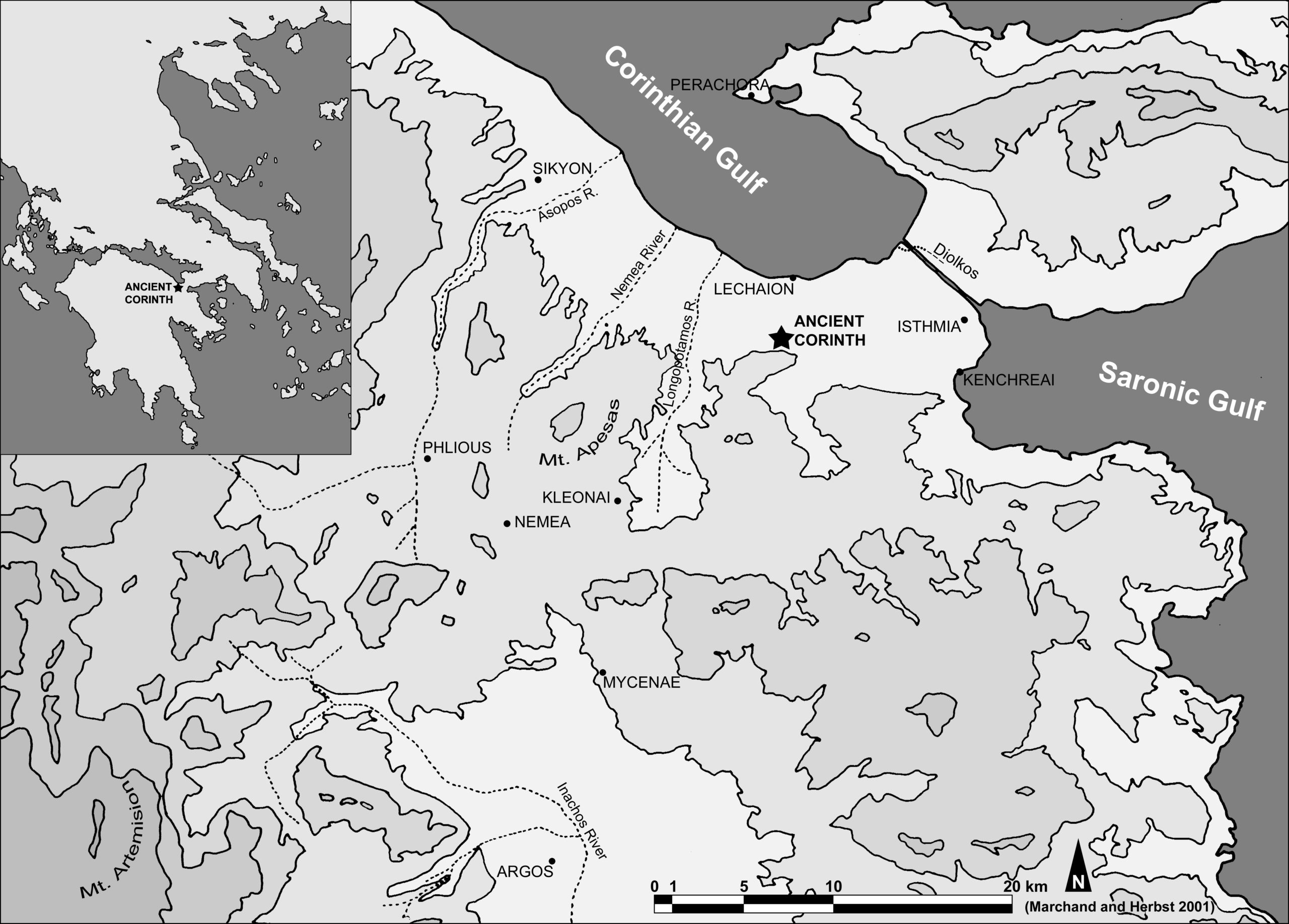 Thus Corinth in Archaic and Classical Greek times controlled, by means of its colonies, trade with Epeirus, Illyria and Magna Graecia (Greater Greece). The many goods it imported included grains, wood and its products, animal fodder and raw metals, while it exported metal, ceramic and other finished products. Such trade required permanent maintenance of both a strong fleet and large harbors. Periander’s rule (“tyranny”) in Corinth (625-585BC) was a time of highest achievement and wealth. It seems reasonable, therefore, to attribute to him the building of the harbor of Lechaeum, the Diolkos, and by extension the harbor of Kenchrae. And this was because the existence of the two harbors called for their linkage by the Diolkos, so as to insure the free and uninterrupted transport of ships and cargoes from one gulf to the other. These were great construction works for their time. They consequently required proper planning, competent organization and good execution. They also presupposed economic strength and technological skill.