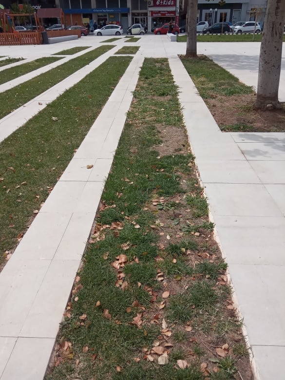 ► Το γκαζόν σε αρκετά σημεία ήδη έχει φθαρεί πριν καν δοθεί σε χρήση. Σκεφθείτε τι θα γίνει το καλοκαίρι.