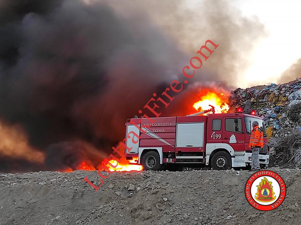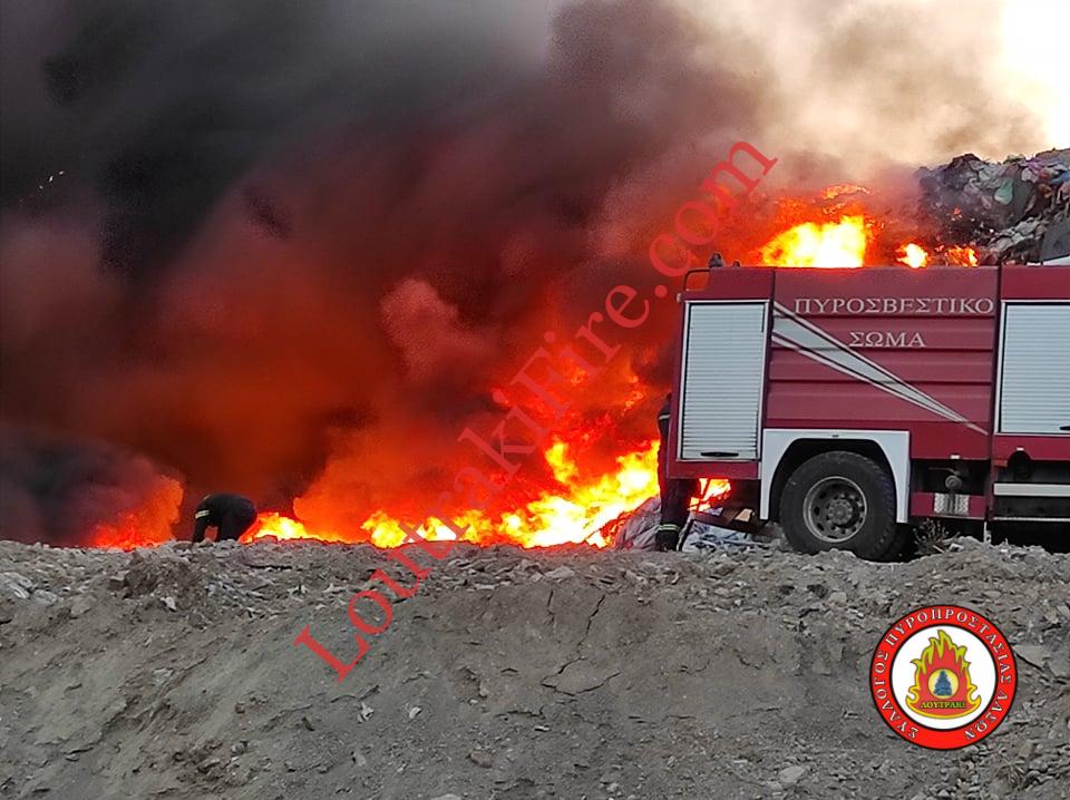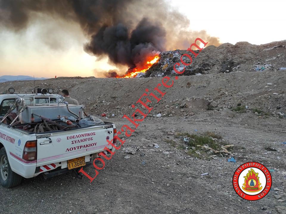 Πυρκαγιά ξέσπασε σήμερα το απόγευμα γύρω στις 7μμ. στην χωματερή Λουτρακίου.