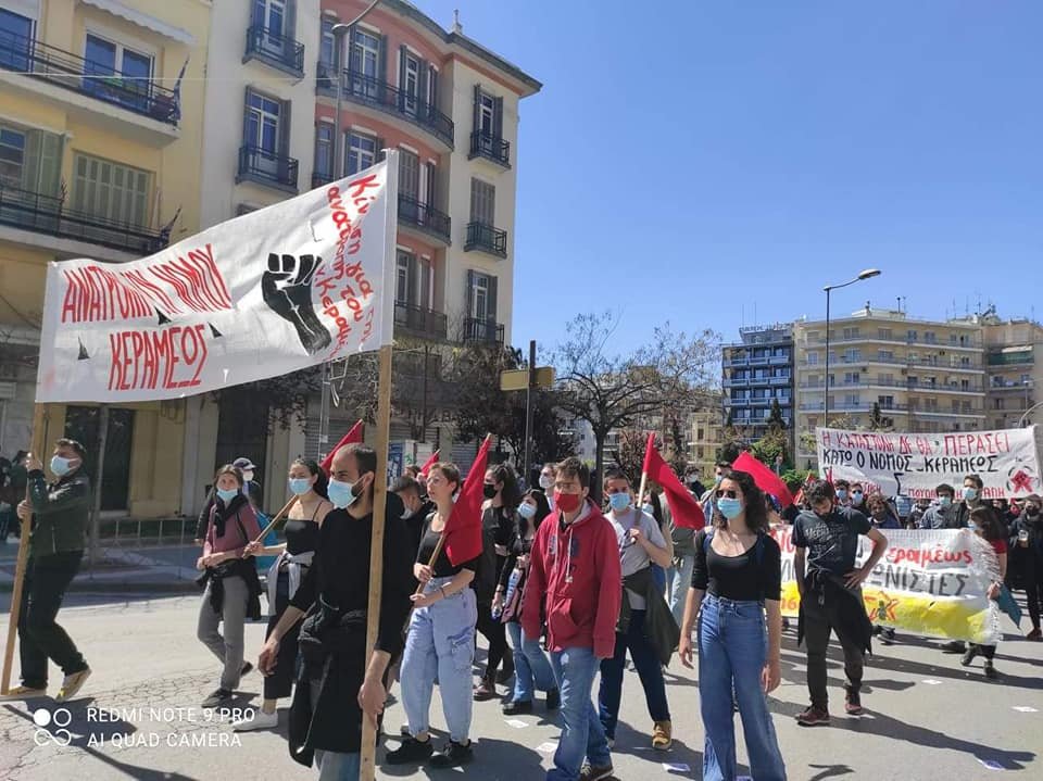 Φοιτητική πορεία με αρκετούς συμμετέχοντες πραγματοποιήθηκε σήμερα στη Θεσσαλονίκη οι οποίοι διαδήλωναν ενάντια στο νόμο Κεραμέως – Χρυσοχοΐδη.