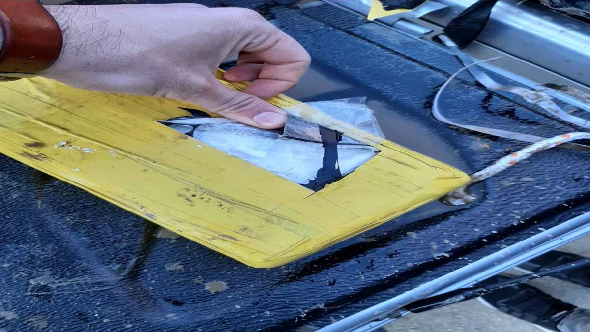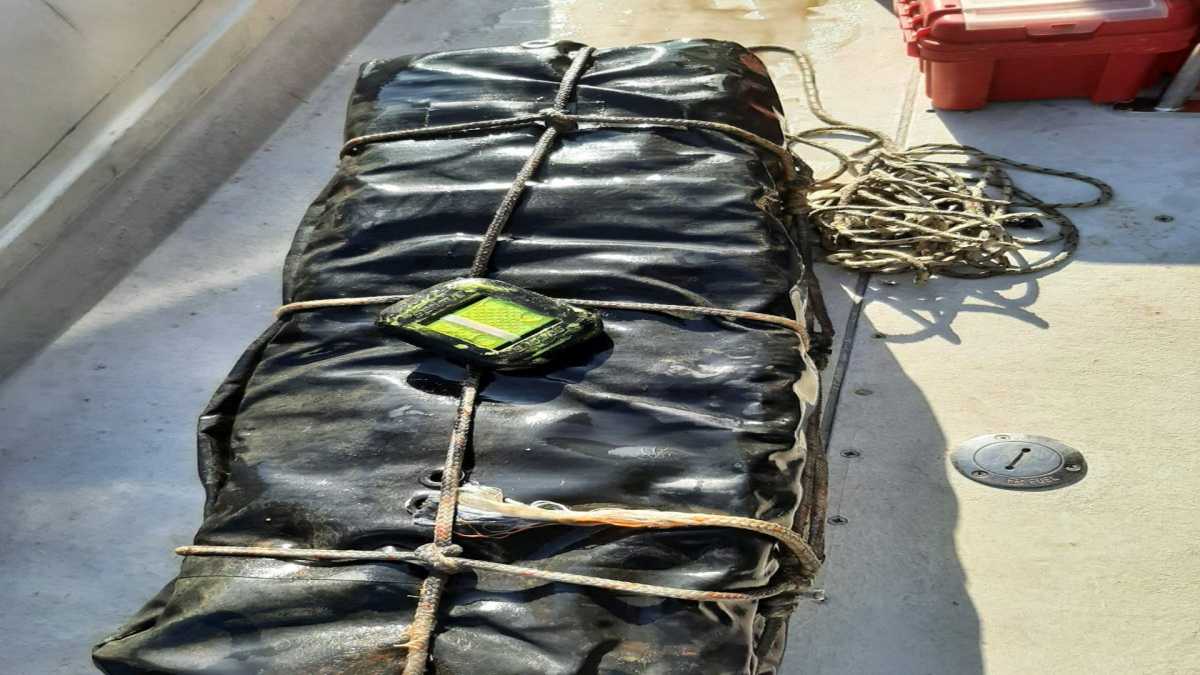 Κατά τον έλεγχο εντοπίστηκε και εν συνεχεία ανασύρθηκε από τα ύφαλα του πλοίου και εντός του χώρου των οχετών αναρρόφησης, ένας σάκος μέσα στον οποίο υπήρχαν 38 πλαστικές συσκευασίες με κοκαΐνη, συνολικού βάρους 46,71 κιλών!