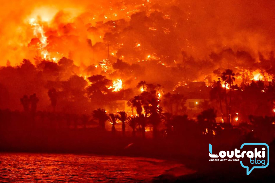 Όπως αναφέρει το meteo του Εθνικού Αστεροσκοπείου Αθηνών, σύμφωνα με τη δορυφορική εικόνα και την εκτίμηση της Ευρωπαϊκής Υπηρεσίας Εκτάκτων Αναγκών Copernicus – EMS, περισσότερα από 25.000 στρέμματα είχαν γίνει στάχτη λίγο πριν από το μεσημέρι της Πέμπτης. Η εκτίμηση αυτή έγινε πριν από την απογευματινή ενίσχυση των ανέμων στην περιοχή και την ολονύχτια συνέχιση του καταστροφικού έργου της πυρκαγιάς.