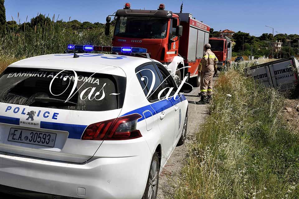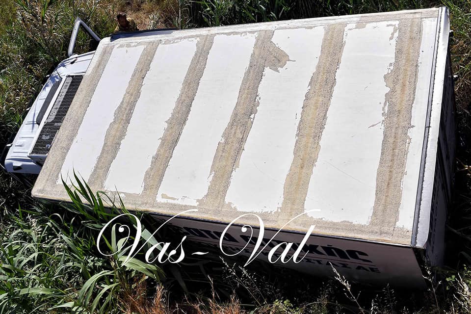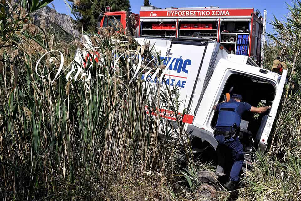Ένα φορτηγό όχημα ξέφυγε της πορείας του και ανετράπη στις Κεχριές Κορινθίας.
