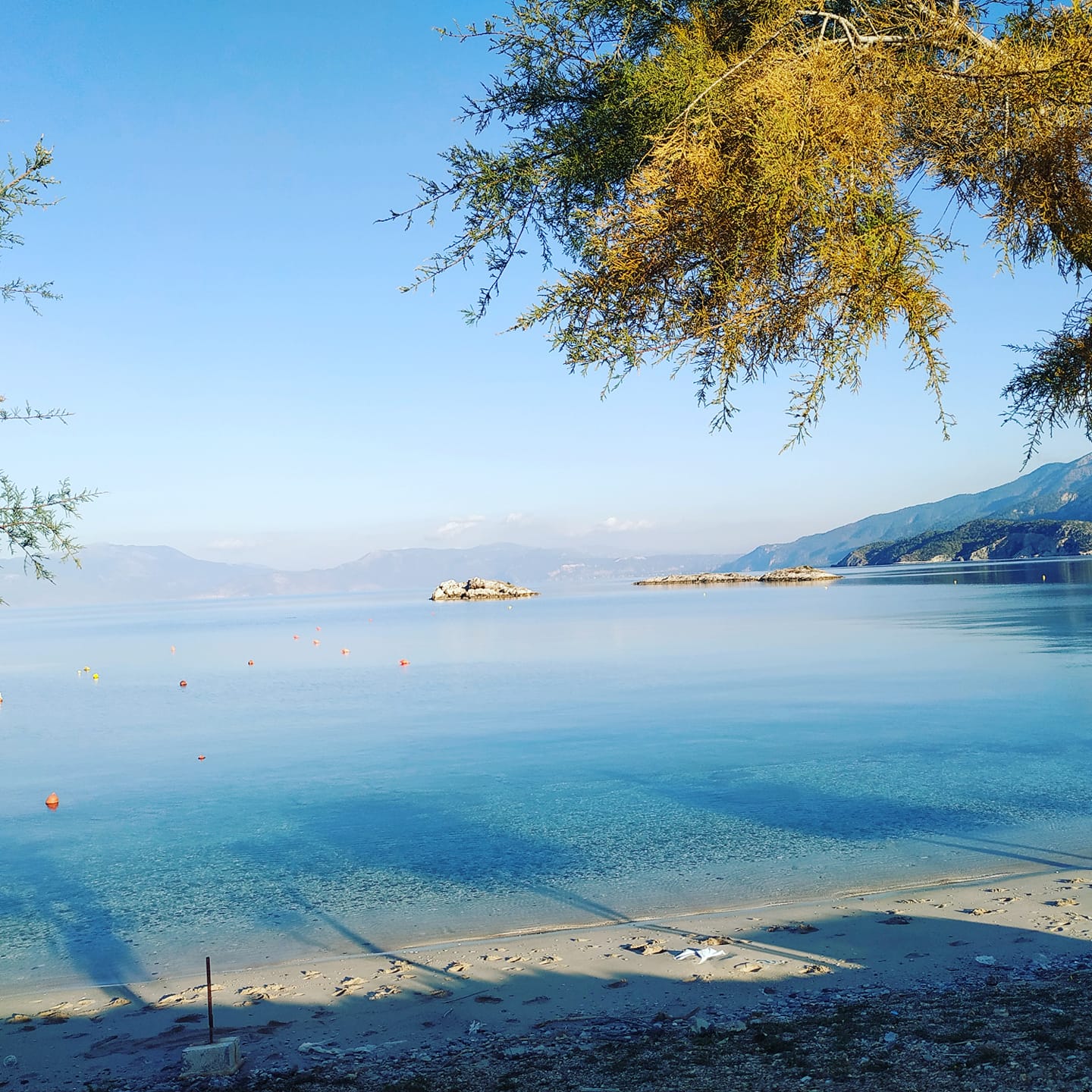 Γαλάζια, κρυστάλλινα και πεντακάθαρα νερά σε μία βοτσαλωτή ακτή. Γύρω – γύρω το σκηνικό συμπληρώνεται από πεύκα και πράσινους λόφους. Ένα τοπίο ηρεμίας και γαλήνης που θα σε κερδίσει από την πρώτη στιγμή και θα επιστρέψεις και πάλι σύντομα.
