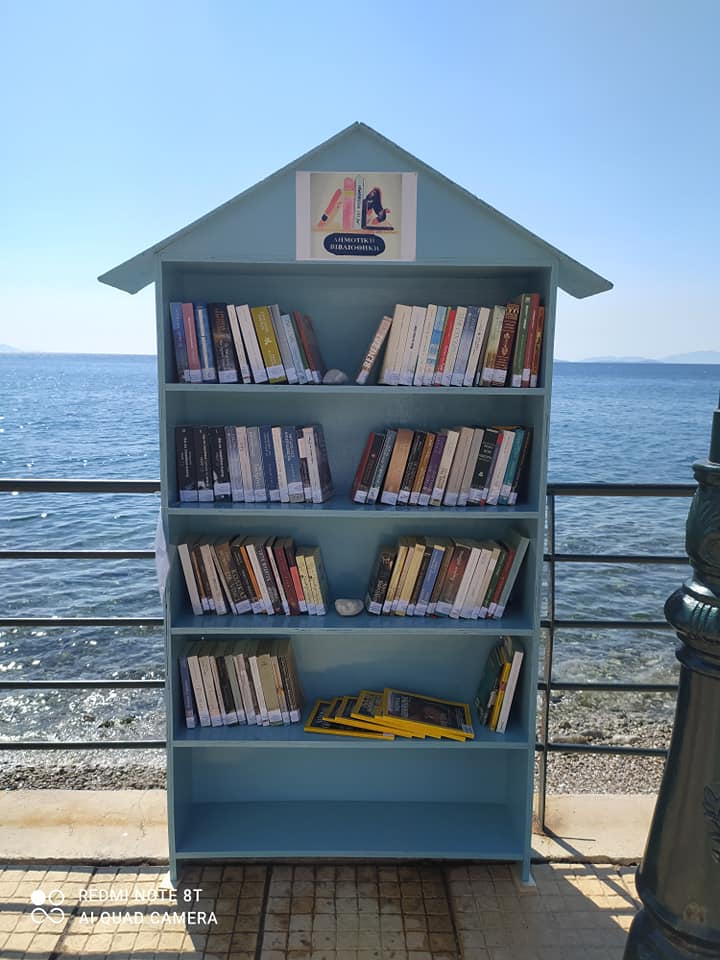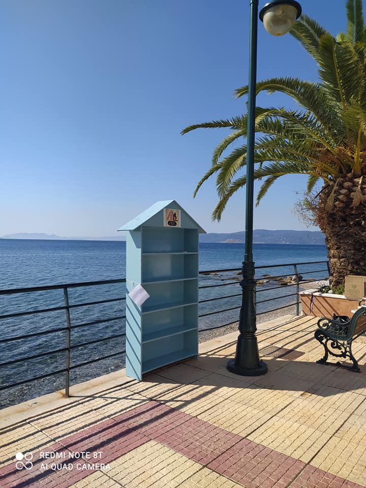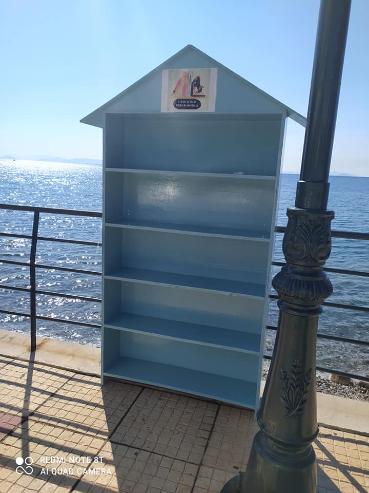 Η υπαίθρια βιβλιοθήκη Αγίων Θεοδώρων είναι έτοιμη βαμμένη και όμορφη . Περιβάλλεται από θάλασσα και όμορφους ανθρώπους. Ήρθε και η πρώτη δωρεά από έναν κάτοικο την ώρα που μας είδε να την τοποθετούμε.