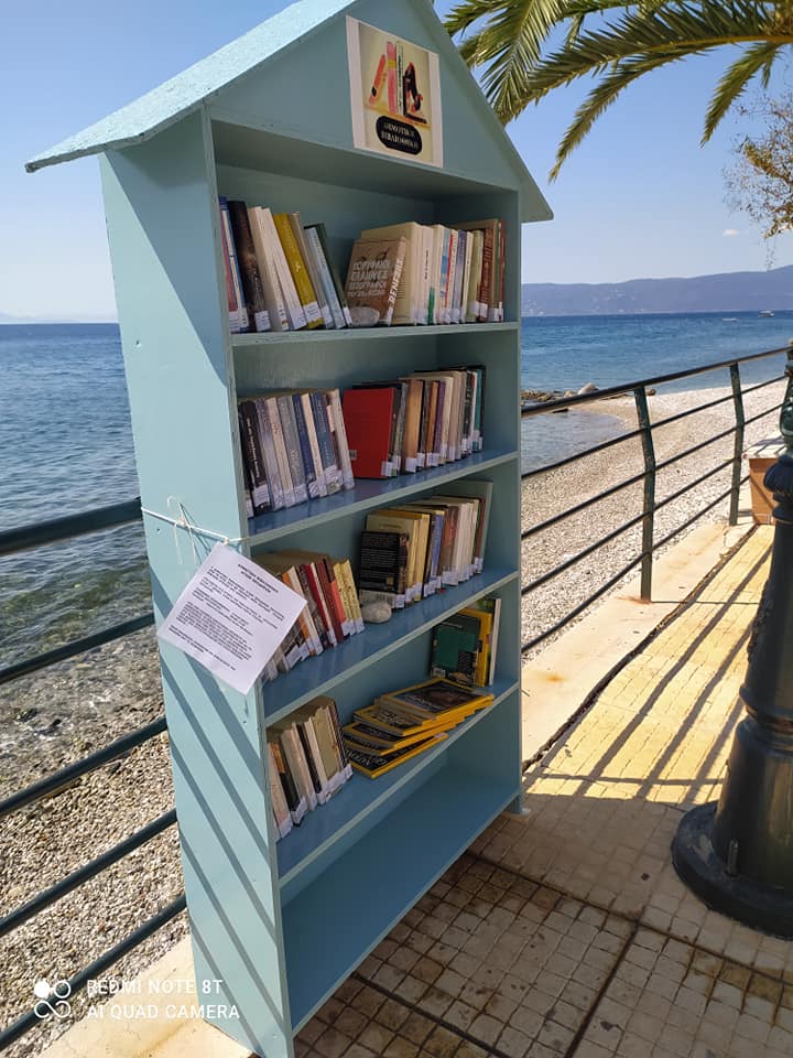 Είμαστε περήφανοι που η πρώτη υπαίθρια βιβλιοθήκη στην Κορινθία είναι και πάλι έξω, στον φυσικό της χώρο.
